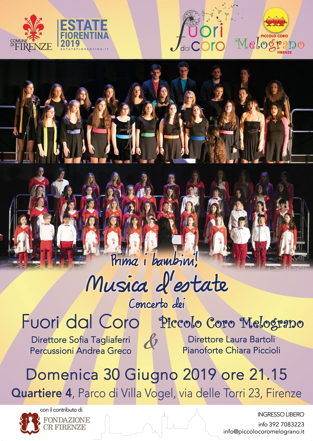 Domenica 30 giugno alle 21.15 concerto col gruppo Fuori dal Coro e Piccolo Coro Melograno con “Musica d’estate”
