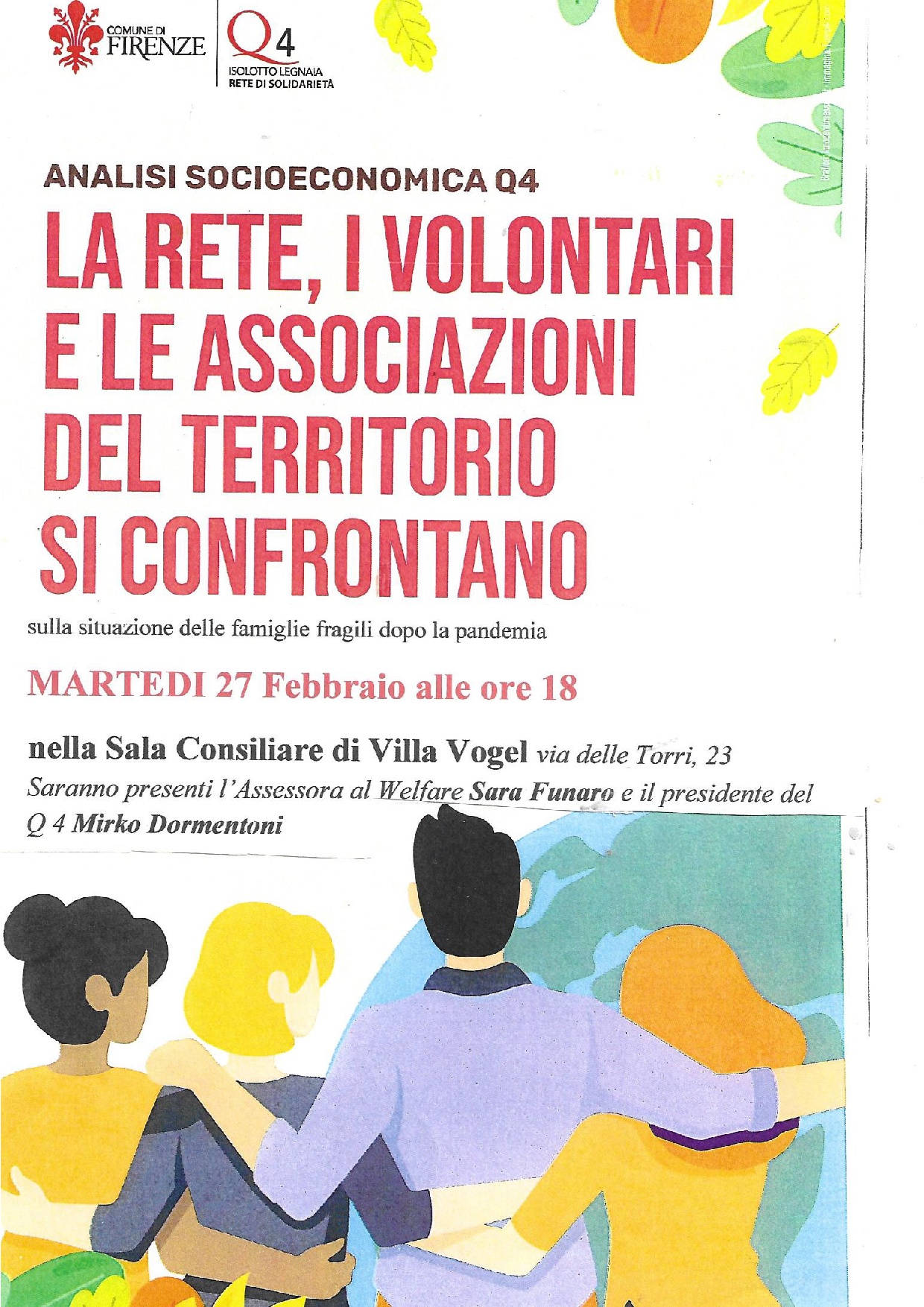 Martedì 27 febbraio ore 18 nella Sala Consiliare di Villa Vogel, via delle Torri 23, la Rete di solidarietà, i volontari e le associazioni del territorio del Quartiere 4 si confrontano sulla situazione delle famiglie fragili dopo la pandemia