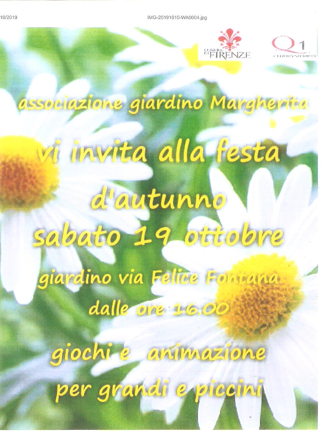 Sabato 19 ottobre alle ore 16, presso il giardino di via Felice Fontana, l’Associazione del Giardino Margherita, con la collaborazione del Quartiere 1, organizza la “Festa d’Autunno”. È prevista animazione per bambini