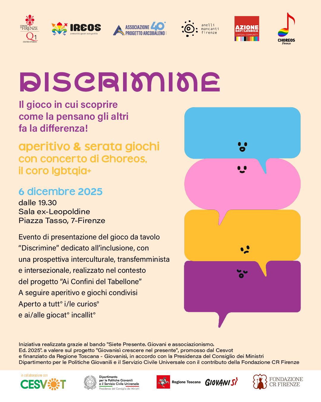 Sabato 6 dicembre alle ore 19:30 presso la Sala ex-Leopoldine brindisi e presentazione del gioco che non porta avanti stereotipi razziali, di genere e orientamento