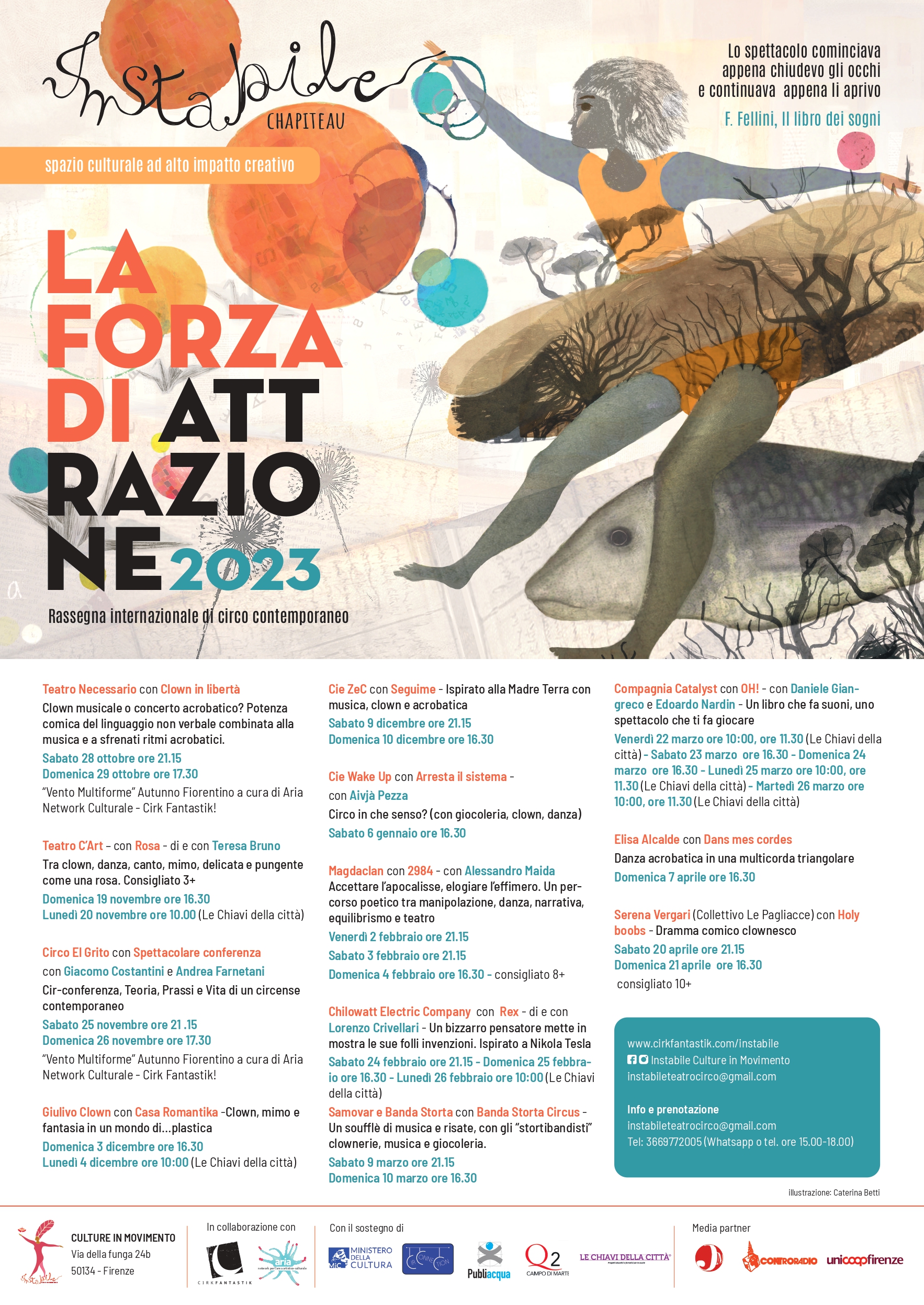 Ritorna con l'edizione 2023 la rassegna internazionale di circo contemporaneo, a cura di Instabile Chapiteau - Culture in Movimento, nell'ambito dell'Autunno Fiorentino 2023; una rassegna ricca di eventi, distribuiti nel territorio del Quartiere 2, tra conferenze, spettacoli, laboratori e tanto altro.