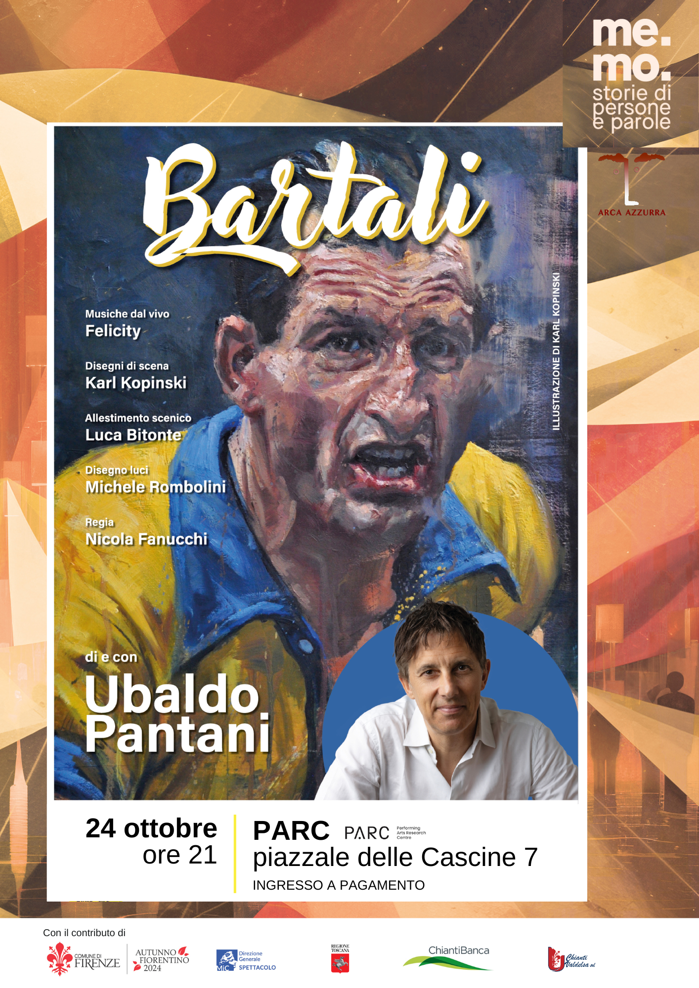 Piazzale delle Cascine 7 Arca Azzurra Bartali di e con Ubaldo Pantani Musiche dal vivo Felicity Regia Nicola Fanucchi Ore 21 INGRESSO A PAGAMENTO Biglietto euro 10