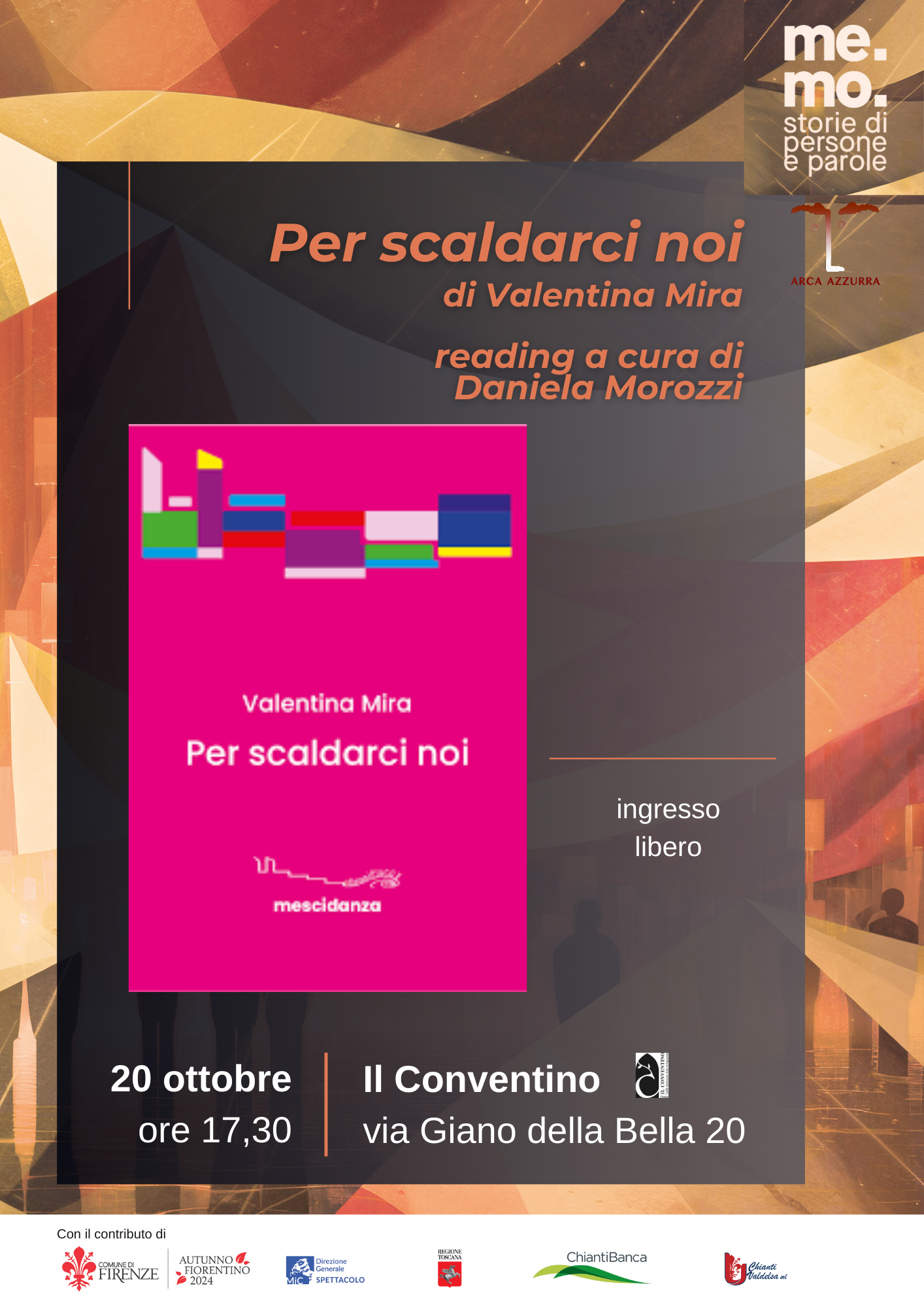 Il Conventino, via Giano della Bella 20 Per scaldarci noi di Valentina Mira letture a cura di Daniela Morozzi Ore 17,30 INGRESSO LIBERO