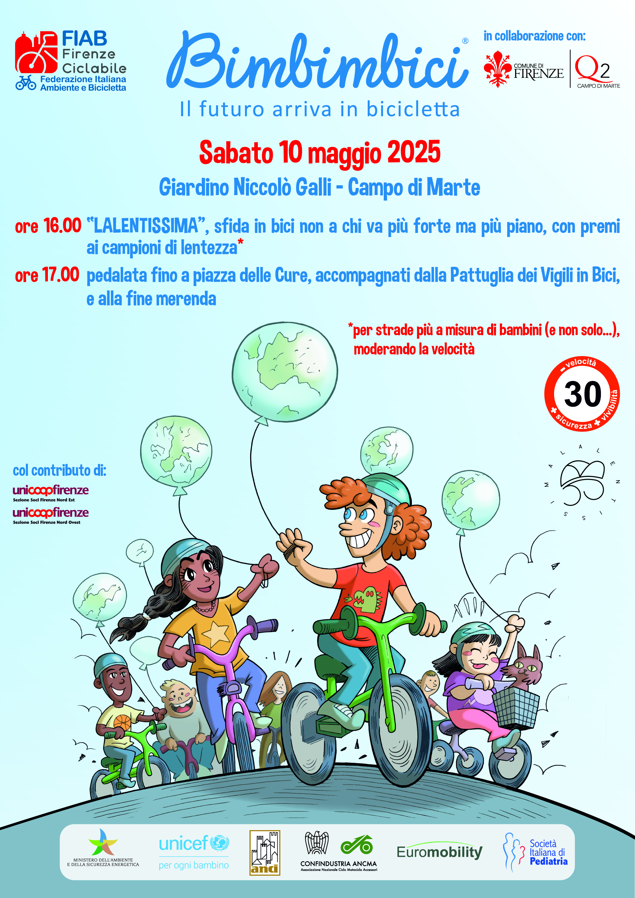 Torna Bimbimbici, la manifestazione organizzata da FIAB Firenze Ciclabile con la collaborazione di UniCoopFirenze e del Quartiere 2, sabato 10 Maggio nei Giardini Niccolò Galli.