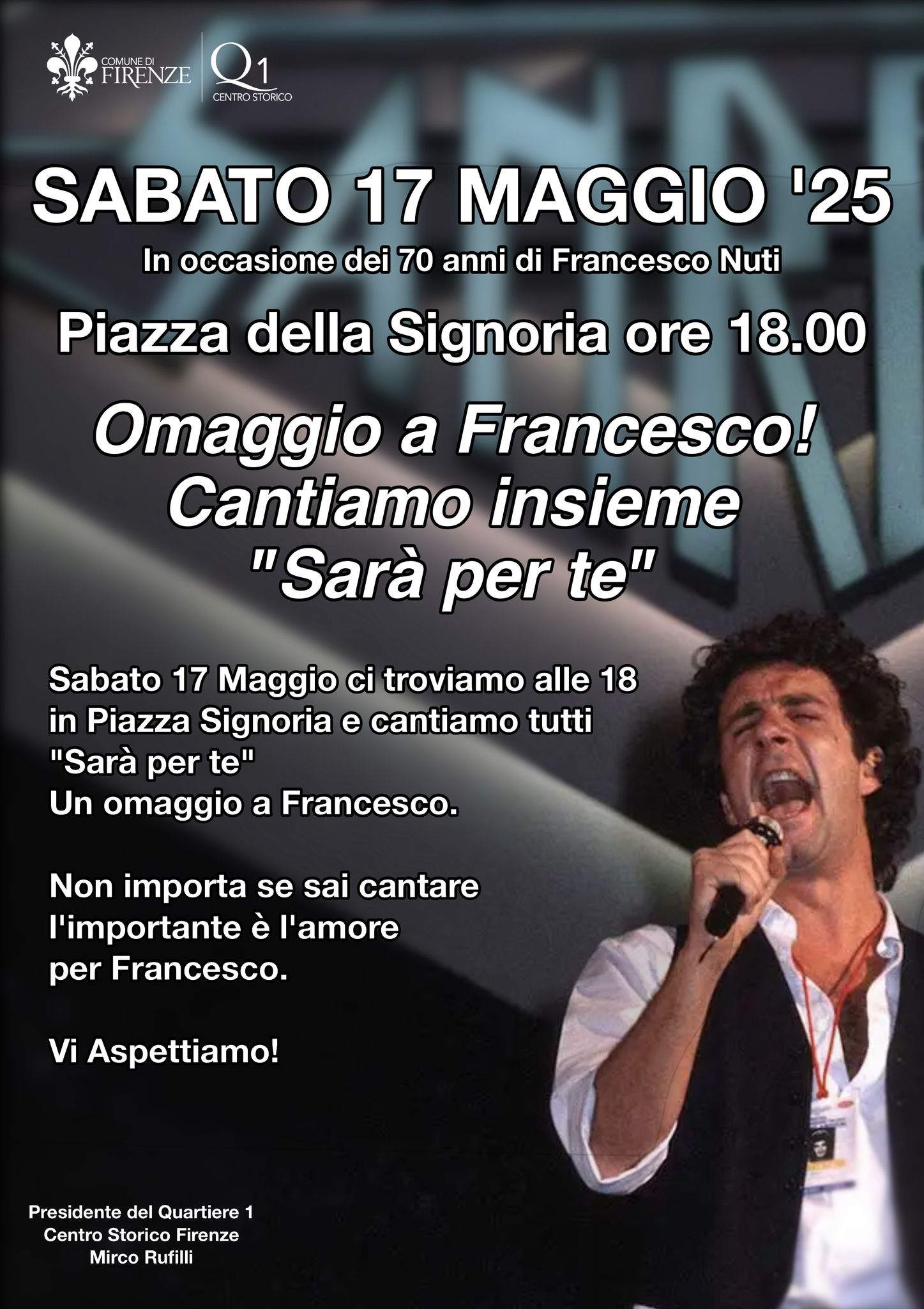 ore 18:00 Piazza della Signoria, flash mob cantiamo insieme "Sarà per te", omaggio a Francesco