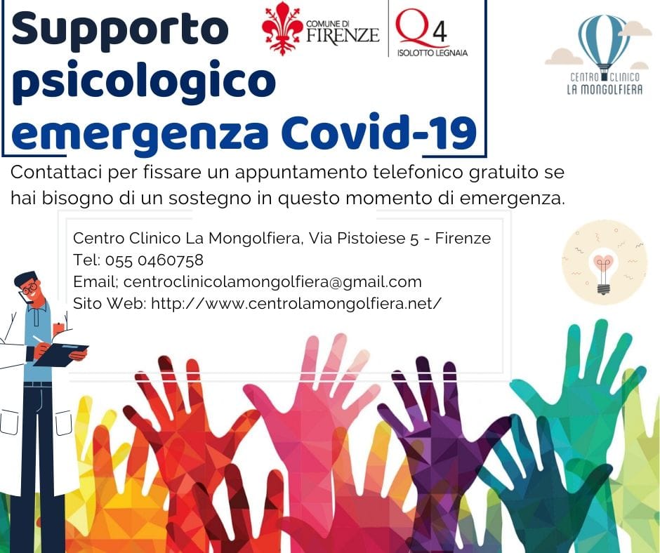Il Centro Clinico La Mongolfiera in collaborazione col Quartiere 4 offre il proprio contributo nella gestione della criticità in corso, proponendo un servizio gratuito di sostegno psicologico telefonico o tramite videochiamata rivolto alla fasce di popolazione più a rischio e, in generale, a chi non riesce a reggere il peso di una quotidianità stravolta. Sono a disposizione psicologi psicoterapeutici esperti per rispondere ai bisogni della popolazione.