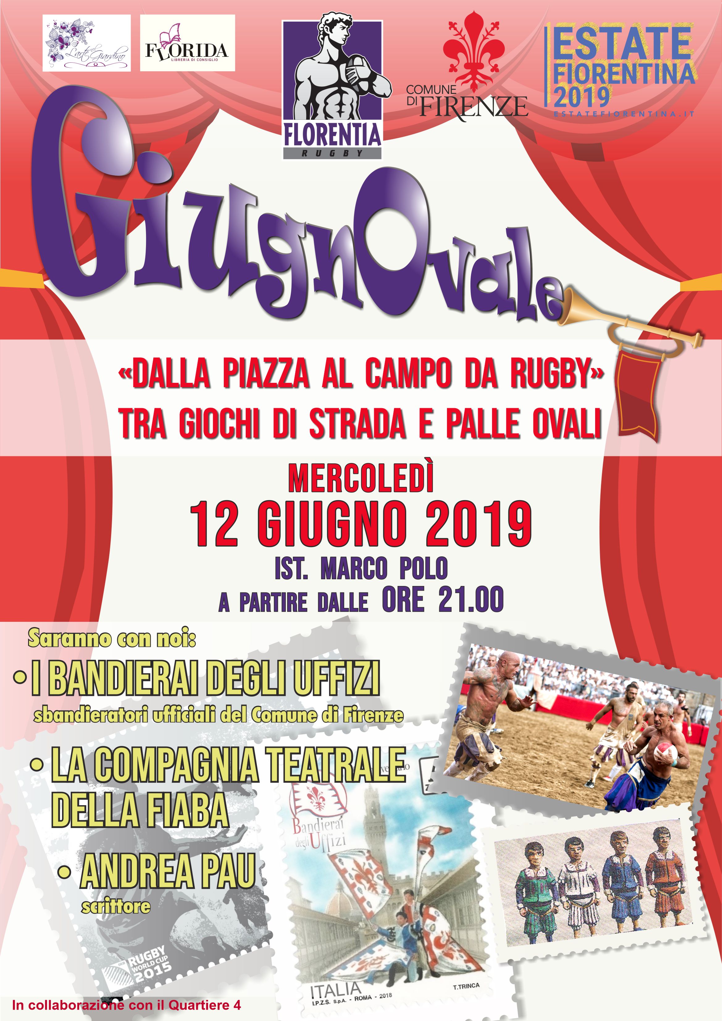 -    Giovedì 6 giugno ore 21, presso il campo Marco Polo, via San Bartolo a Cintoia 19/a, incontro con Luciano Artusi, Direttore del Corteo del Calcio Storico e fiorentino dal 1960, con cui scopriremo tante storie di Firenze e del suo gioco!  Ci saranno anche Marco Pastonesi, giornalista , autore di “La leggenda di Maci” e “Uragano nero”, grazie al quale conosceremo tante storie di rugby, e Maurizio Bonfiglio, storico Calciante dei Bianchi, e Gianni Bertoli, altrettanto storico Calciante dei Verdi.