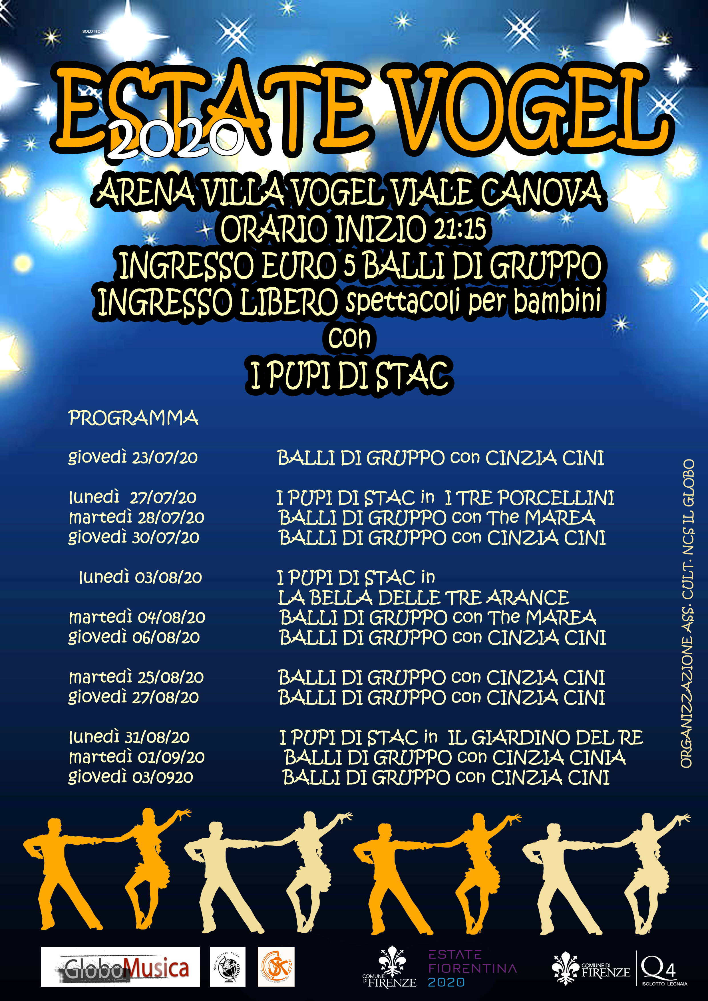 Balli di gruppo e spettacoli per bambini all’arena di Villa Vogel