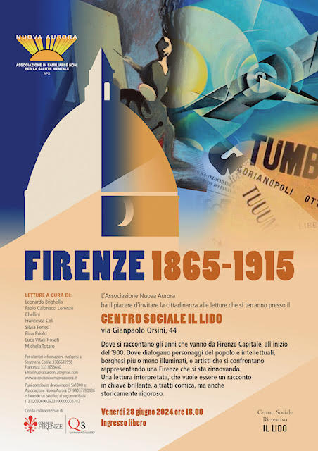 Le letture saranno condotte dal direttore artistico dell’Associazione Nuova Aurora che ha preso in esame un testo scritto da Loretta Bellesi Luzzi, nipote del Poeta Mario Luzi. Il testo molto brillante, racconta gli anni di Firenze Capitale, dove si mescolano personaggi del popolino, insieme a personaggi mitici, come Beppa La Fioraia, il Lachera, ma anche intellettuali, borghesi più o meno illuminati, e artisti che dialogano, si confrontano e rappresentano una Firenze che si sta rinnovando. Prima come capitale, con i lavori di risanamento del Poggi, poi come città lanciata verso una dimensione nazionale, con i letterati delle Giubbe Rosse e del caffè Michelangelo, fino ai Futuristi di inizio secolo. Una narrazione ricca di situazioni, di scontri e incontri tra il popolino, tra i nuovi venuti dal Nord, i Torinesi, e la nuova cultura cittadina.
