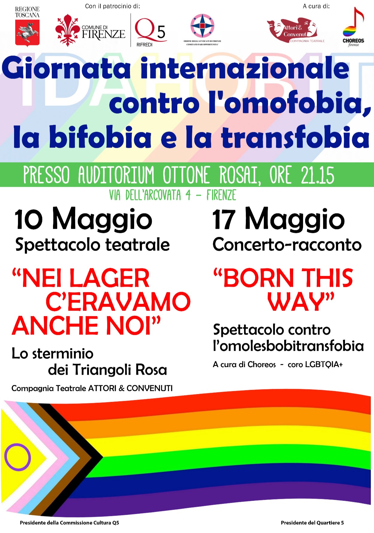 La Compagnia Teatrale Attori e Convenuti presenta lo spettacolo ideato da Gaetano Pacchi per celebrare il “Giorno della Memoria” che si basa sulle testimonianze di tre uomini rinchiusi nei campi di concentramento nazisti, perché omosessuali - Venerdì 17 maggio ore 21.15 Auditorium Ottone Rosai, via dell’Arcovata 4.