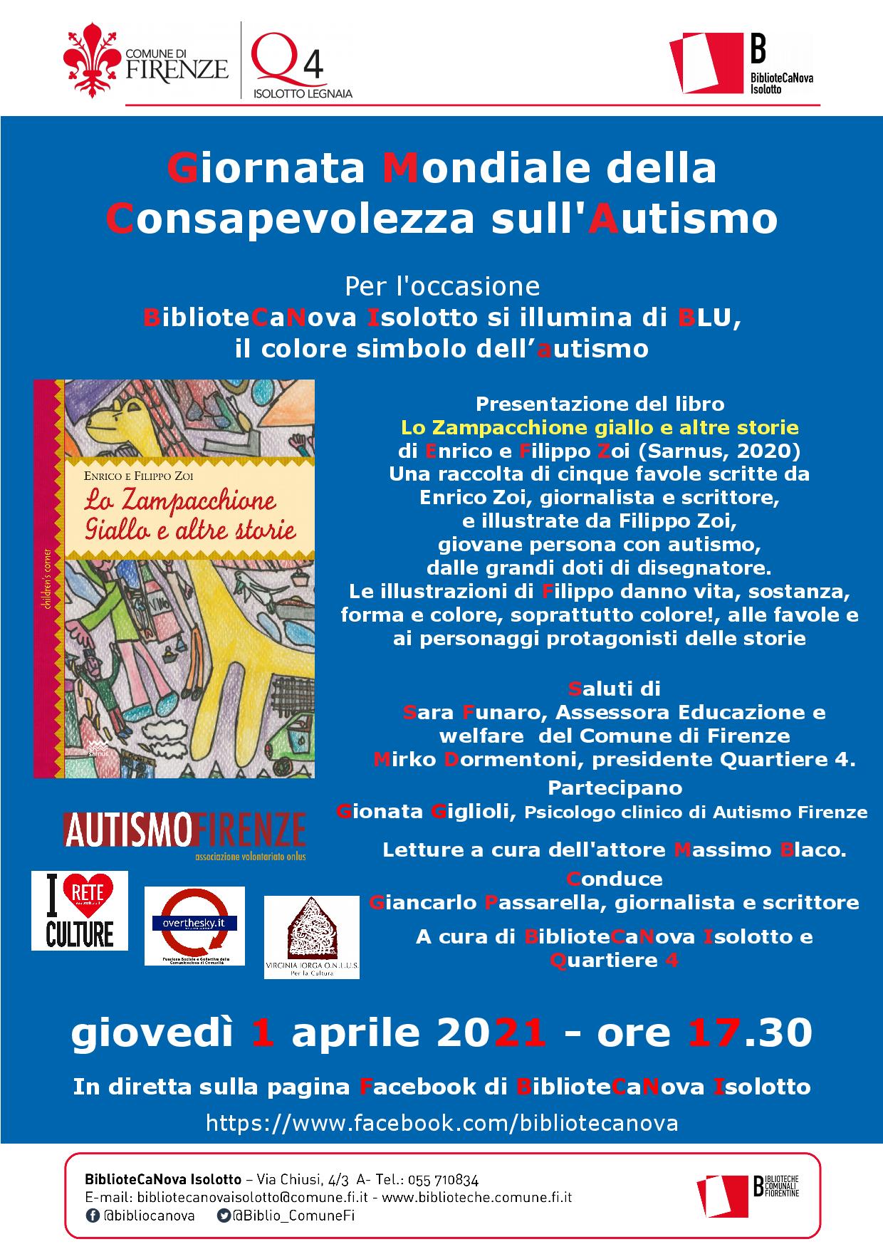Il 1° aprile alle 17,30 in occasione della giornata mondiale per l’autismo, dalla BiblioteCaNova illuminata di blu presentazione on line del libro di Enrico e Filippo Zoi