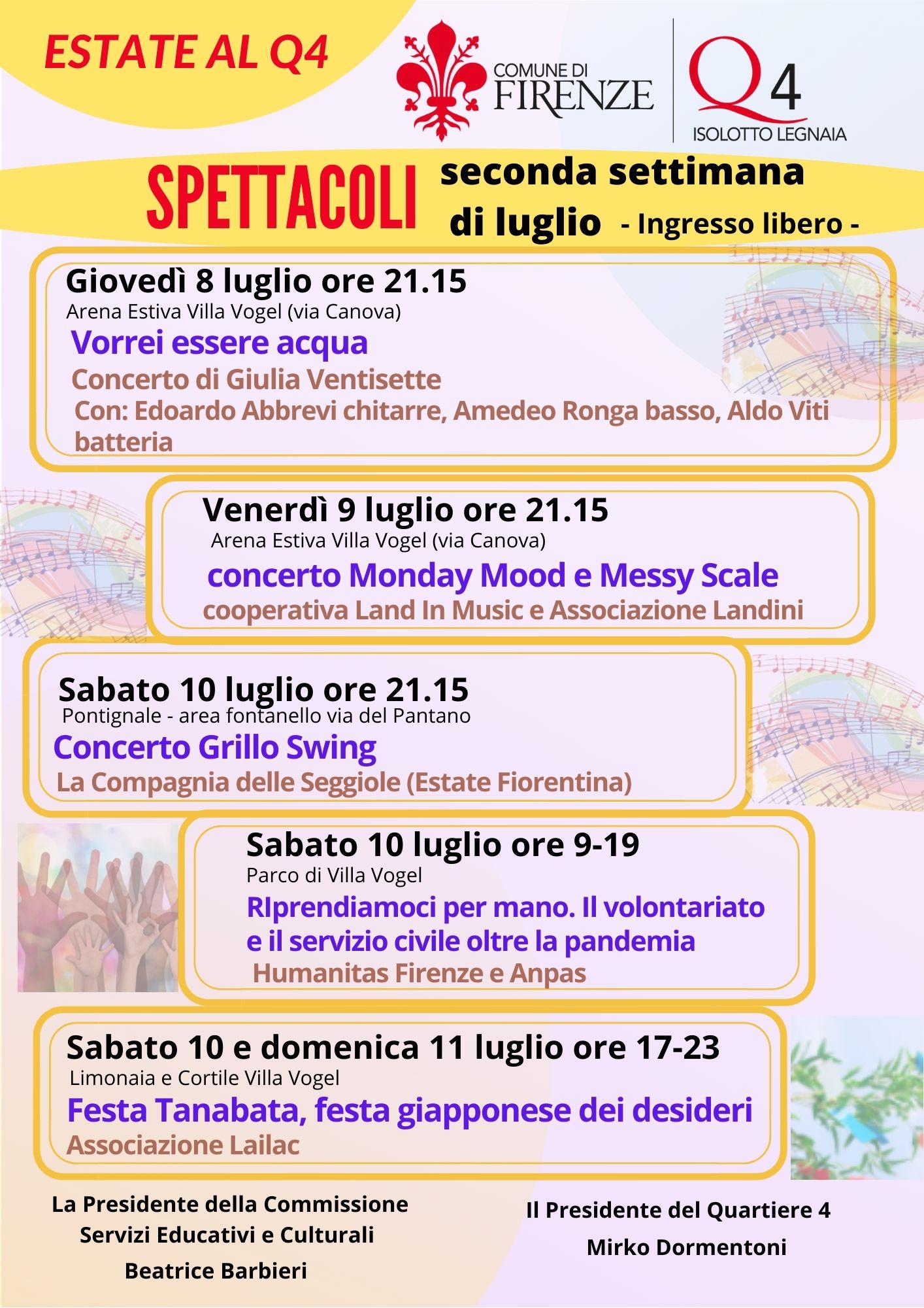 Prosegue su questa linea la rassegna gratuita di eventi estivi del Quartiere 4 ‘Estate Q4’: dall' 8 all' 11 luglio ben 5 appuntamenti!