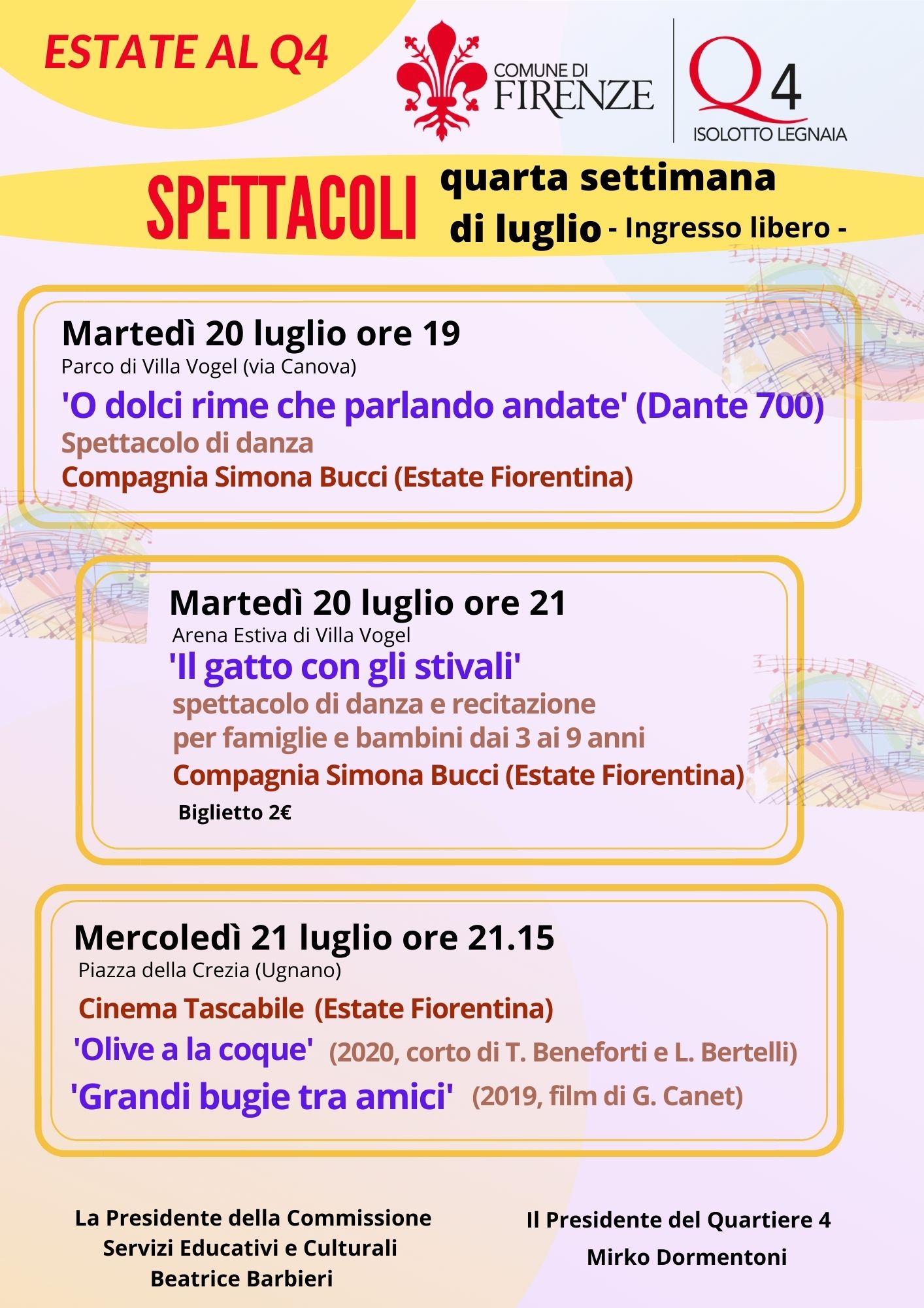 Prosegue su questa linea la rassegna gratuita di eventi estivi del Quartiere 4 ‘Estate Q4 del 20 e 21 luglio.