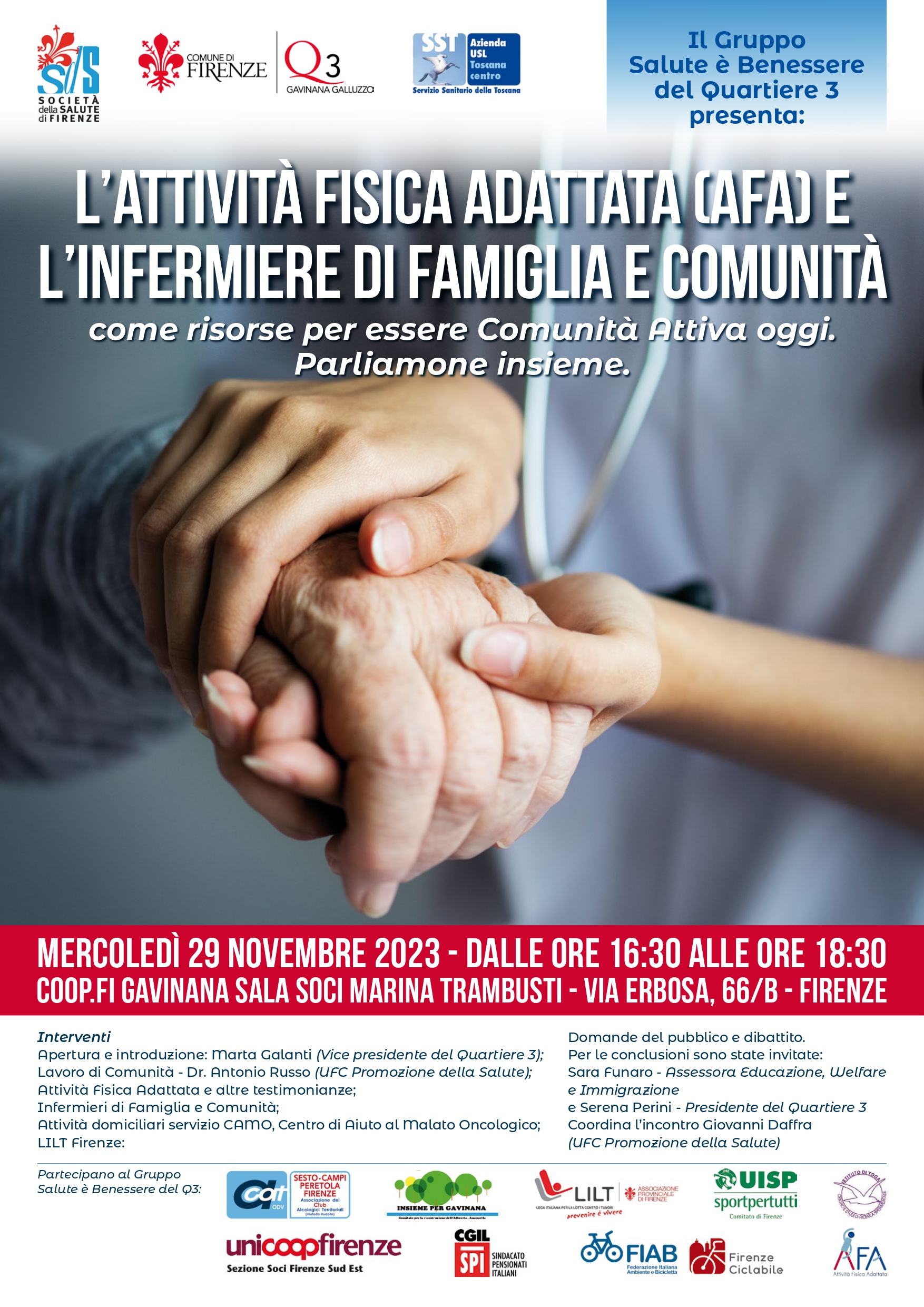 L'incontro si svolgerà mercoledì 29 novembre 2023 dalle ore 16:30 alle ore 18:30 presso la sala soci Coop "Marina Trambusti" di Gavinana (in via Erbosa, 66/B).