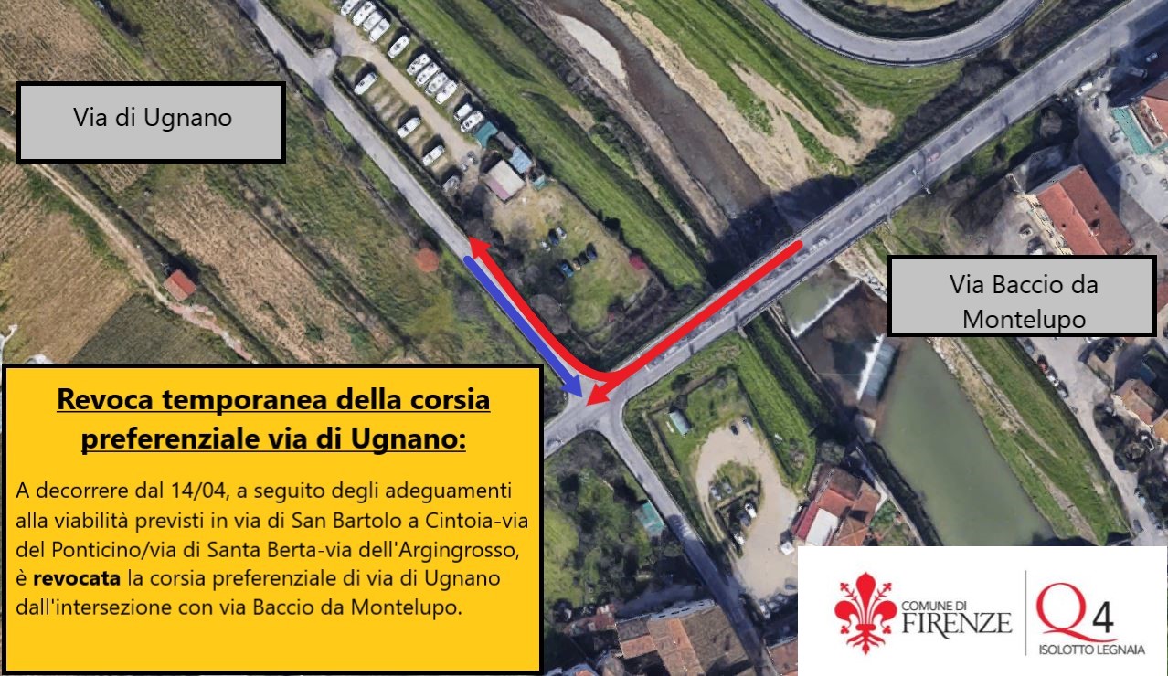Sarà realizzato un senso unico alternato e semaforizzato sul Ponte di Mantignano tra via Santa Berta e via di San Bartolo a Cintoia. Contemporaneamente, per agevolare una strada alternativa, sarà soppressa la corsia preferenziale su via di Ugnano permettendo il doppio senso di marcia con entrata e uscita da via Baccio da Montelupo all'incrocio semaforico con la stessa via di Ugnano.