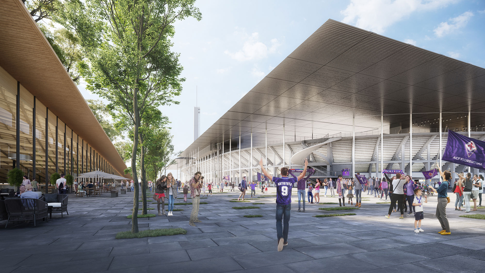 La riqualificazione dello Stadio Artemio Franchi è integrata nel Masterplan del Campo di Marte. Il progetto del masterplan nasce dalla volontà di creare uno spazio pubblico per l’intera comunità, attrattivo e vivo, non solamente in occasione delle partite di calcio ma, tutti i giorni dell’anno. Il progetto prevede di estendere la zona verde, antistante lo stadio, creando un parco che dialoga direttamente con il quartiere i cui servizi, tra cui il mercato rionale, saranno inclusi organicamente nel disegno, immaginato come ‘foglia verde’. Le soluzioni proposte migliorano la resilienza dell’area rispetto ai fenomeni atmosferici.
