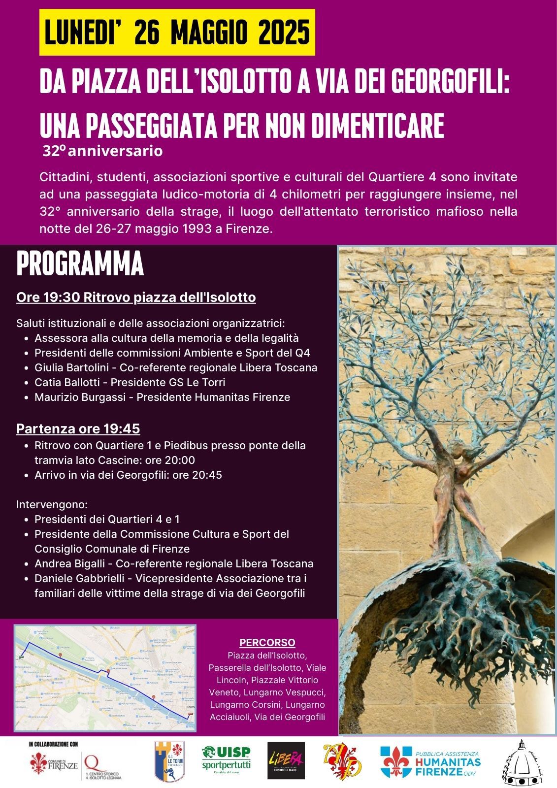 La Passeggiata dei Georgofili non è solo un evento sportivo: è un gesto collettivo di memoria attiva. Ogni passo è un modo per dire no alla violenza e ribadire l'importanza della memoria come forma di impegno civile.