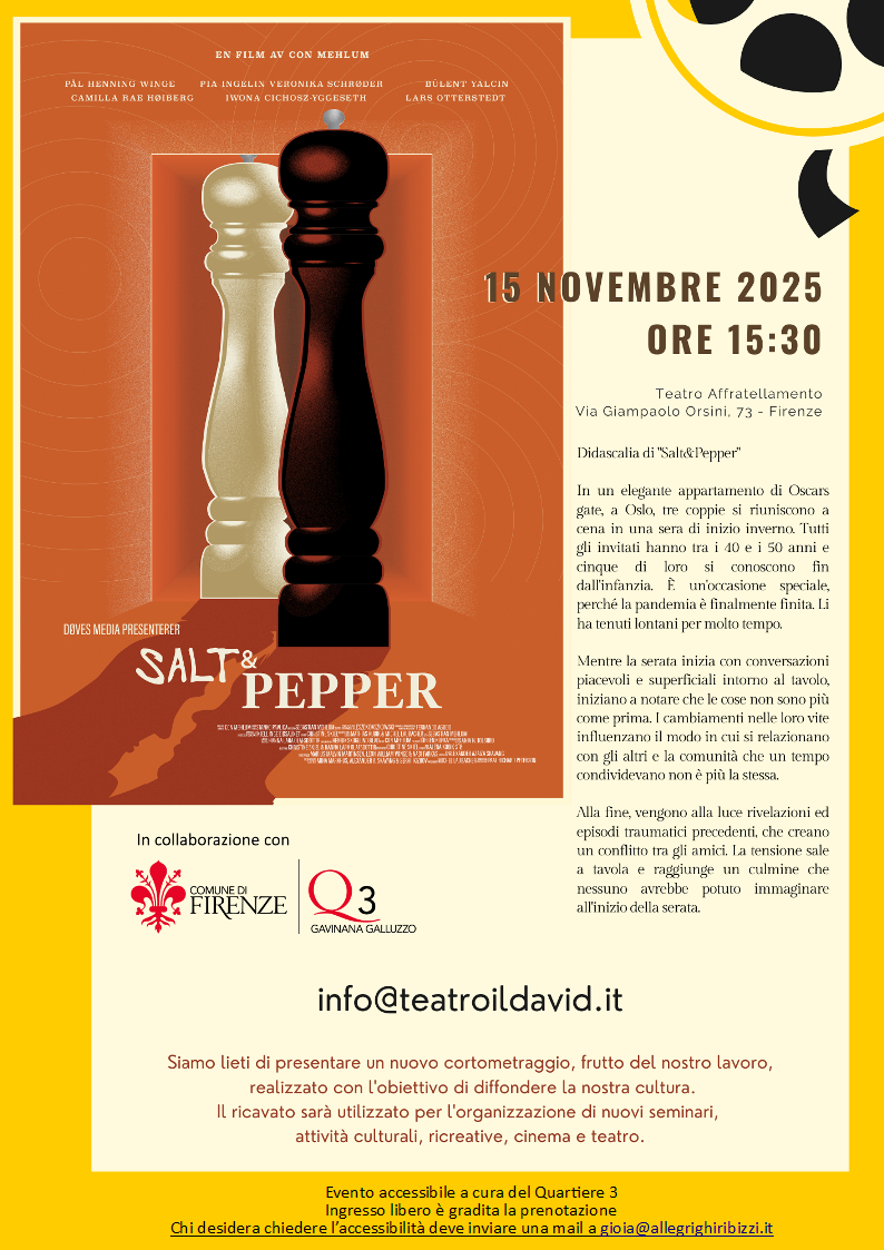 Sabato 15 novembre ore 15:30 presso il teatro L'Affratellamento si terrà la proiezione del film "Sale e Pepe".