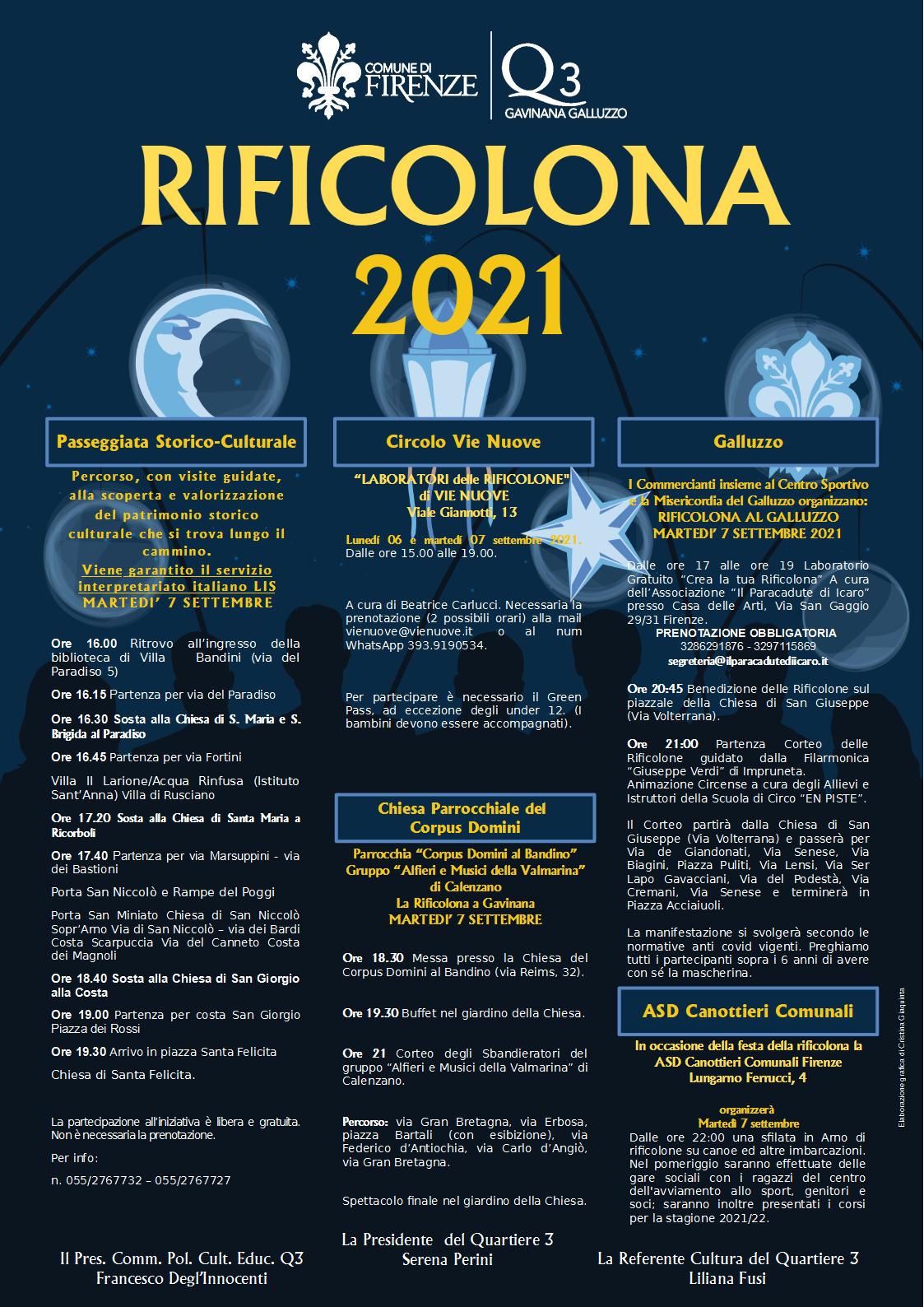In occasione della ricorrenza della Rificolona, nei giorni 6 e 7 settembre 2021, un programma ricco di eventi nel quartiere 3. Oltre a cortei ed animazione, viene dedicato uno spazio privilegiato ai bambini del quartiere e di tutta la città, con laboratori che consentono di costruire le vere rificolone artigianali.