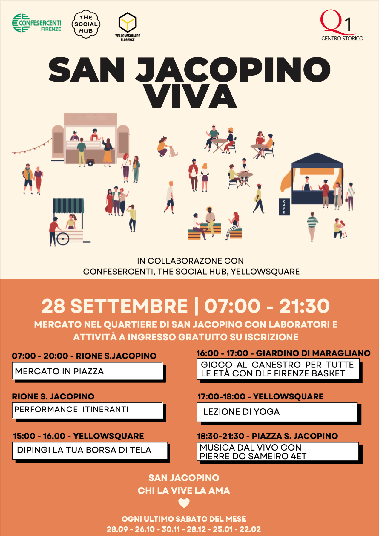 Sabato 28 settembre per l'intera giornata rione di San Jacopino in festa con mercato, laboratori e tante attività ad ingresso gratuito