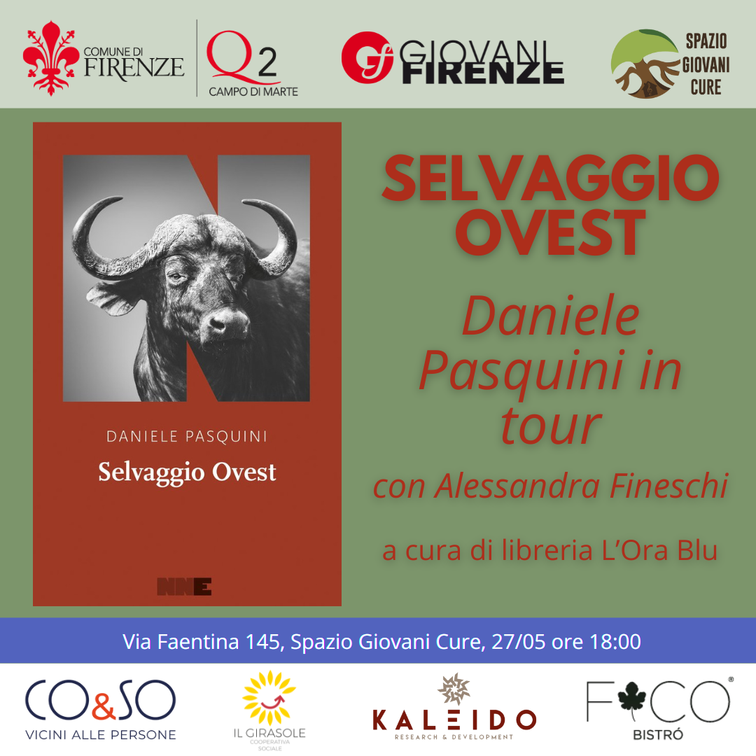IL 27 maggio, presso lo Spazio Giovani Cure alle ore 18:00, si terrà la presentazione del libro "Selavaggio ovest" di Daniele Pasquini. "Selvaggio Ovest" è un romanzo d'avventura e corale, dove le piccole vite emergono nel grande intreccio della Storia. Daniele Pasquini trasporta con passione il West americano in Toscana, trasformandolo in una leggenda quotidiana da tramandare a voce.