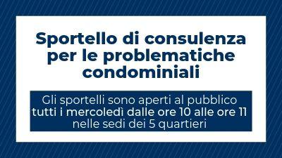 Si comunica la sospensione fino al giorno 3 aprile 2020 dell'attività degli sportelli di consulenza per problematiche condominiali attivi presso i cinque Quartieri ogni mercoledì mattina