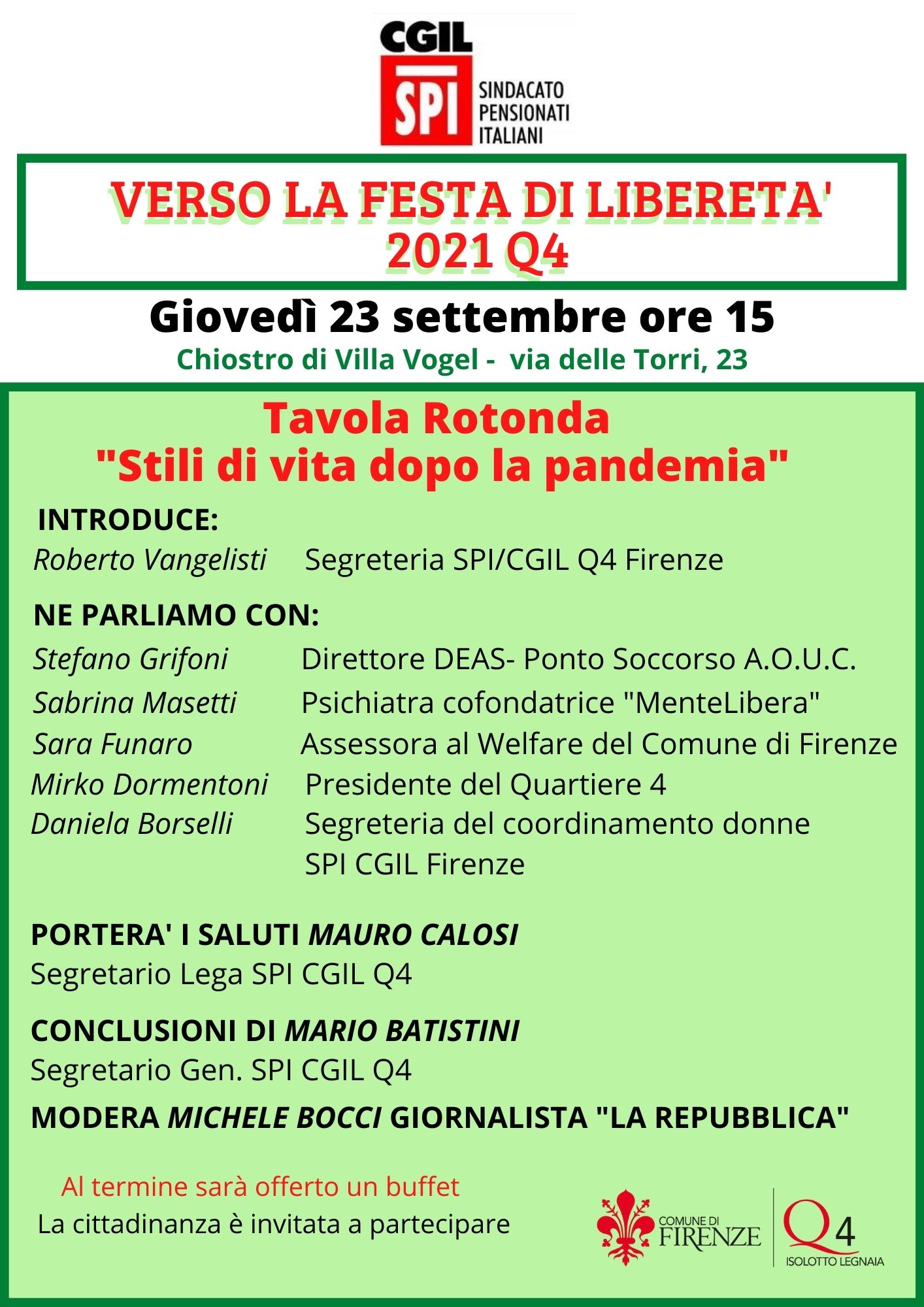 - Porterà i saluti Mauro Calosi, Segretario di Lega Spi/Cgil Q4