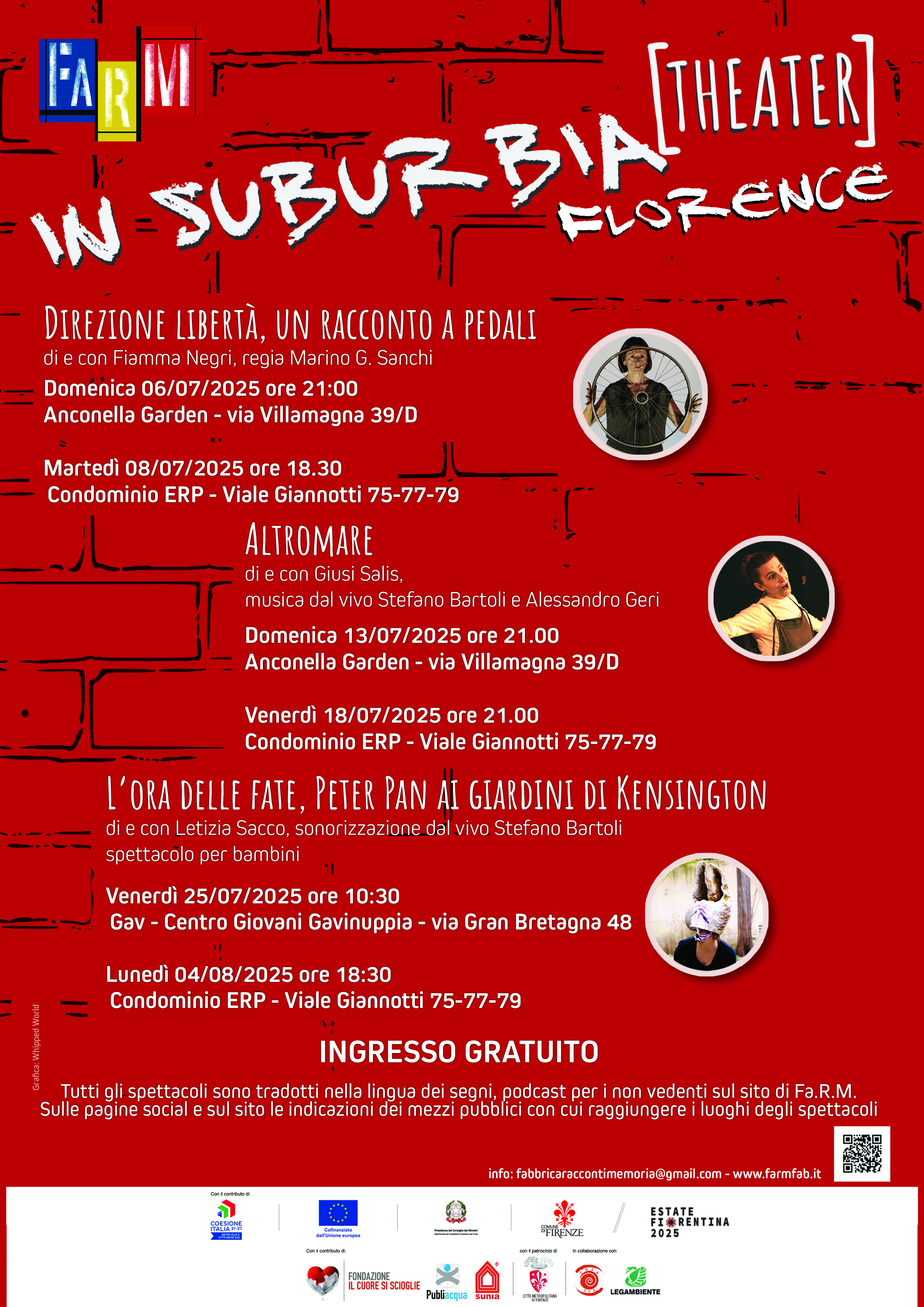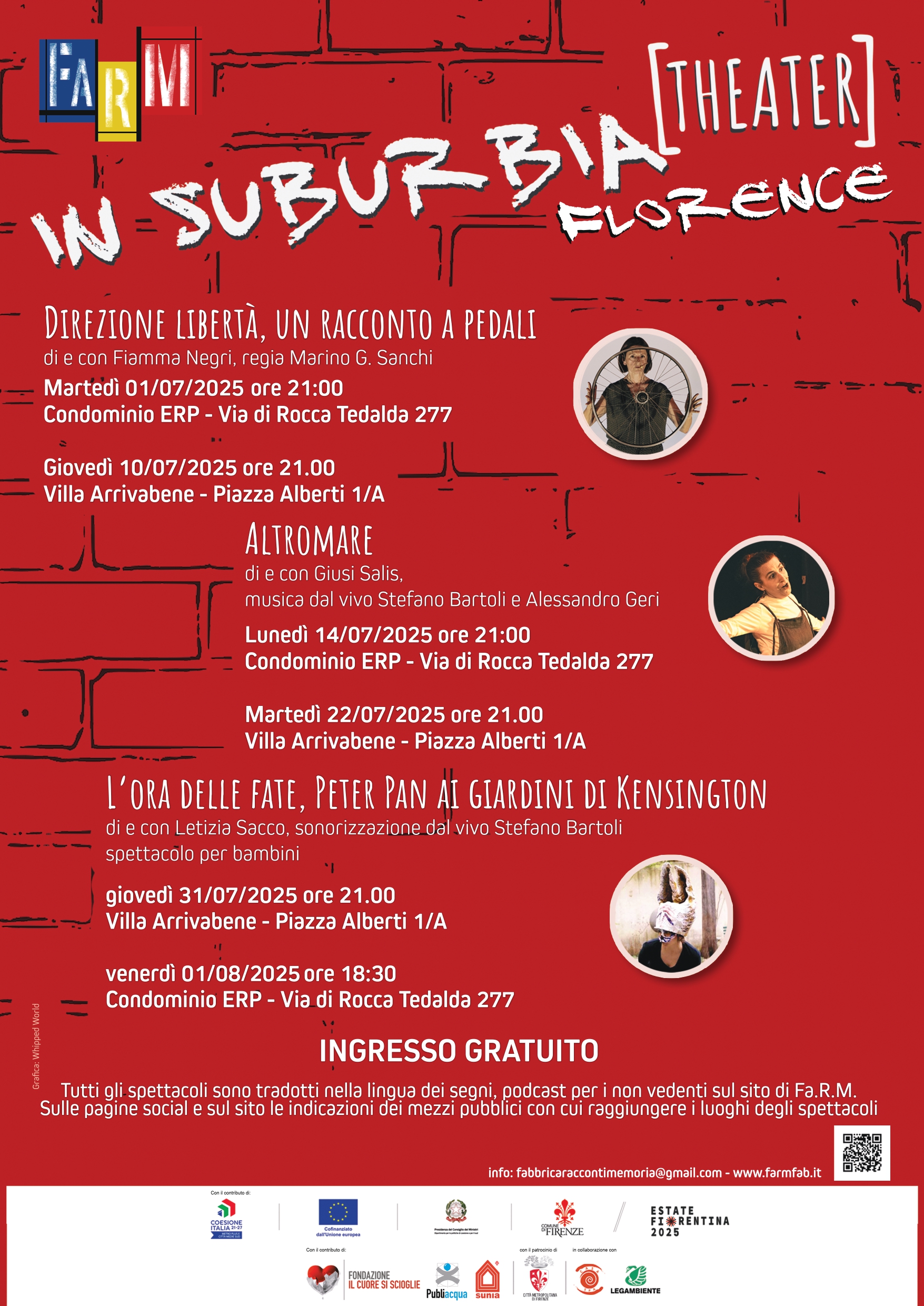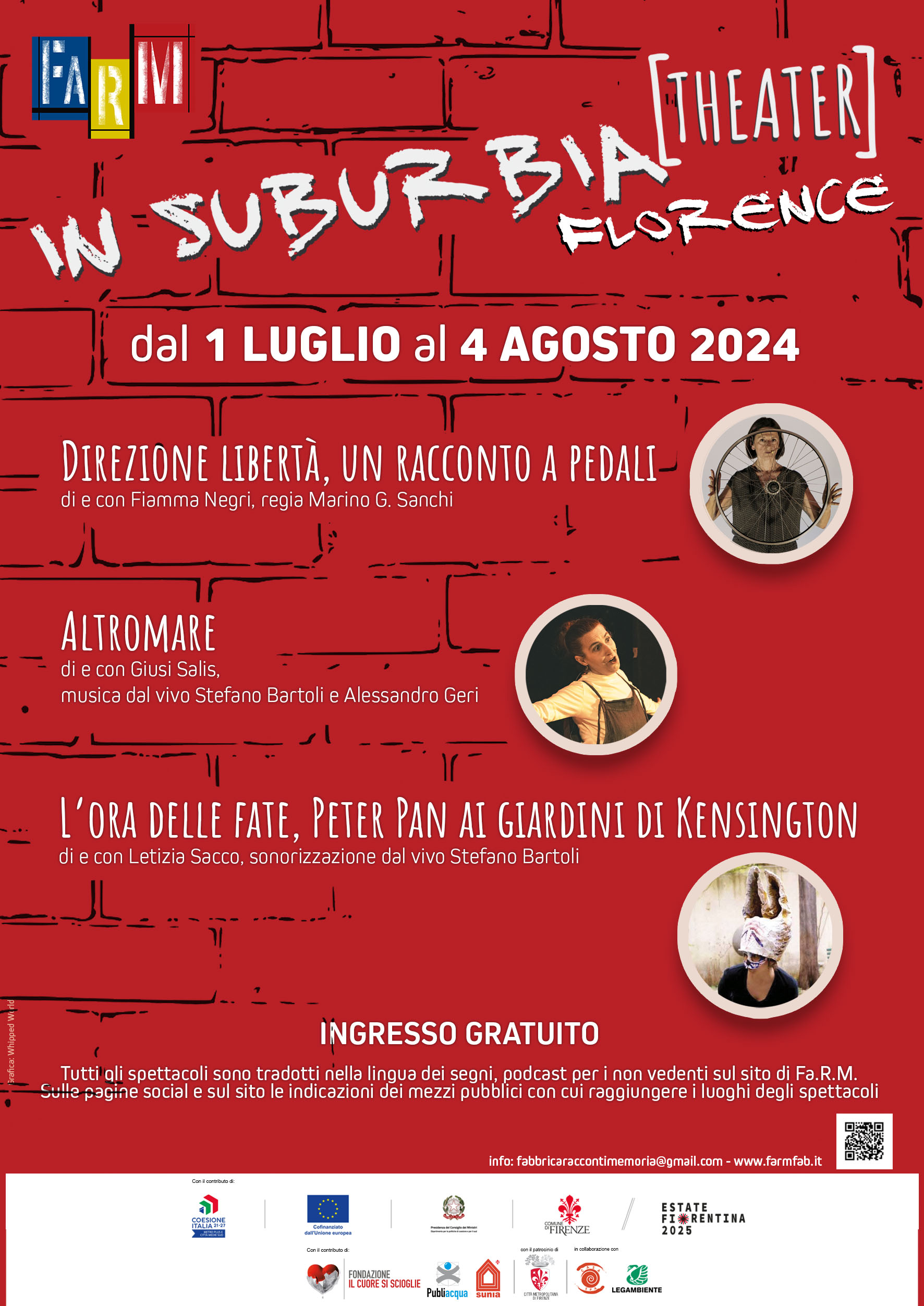 Torna anche nel 2025 la rassegna estiva di FaRM, Fabbrica dei Racconti e della Memoria, con tanti appuntamenti nei Quartieri di Firenze, tutti ad ingresso libero e gratuito, realizzati con il contributo dell'Estate Fiorentina, per un mese all'insegna del teatro.