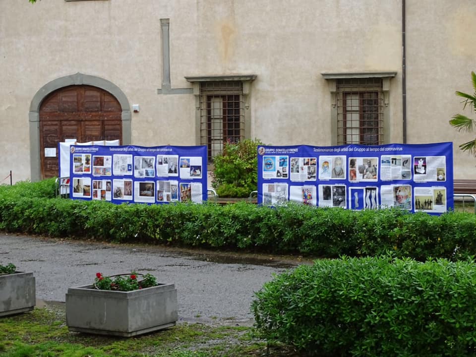 Con le riproduzioni di lavori, foto e riflessioni dei mesi passati, in forzato isolamento, hanno realizzato quattro grandi stendardi orizzontali, per una lunghezza complessiva di quasi 20 metri, dal titolo “Testimonianze degli artisti del Gruppo Donatello al tempo del Coronavirus” e sono stati posti nel giardino di Villa Arrivabene, sede del Quartiere 2.