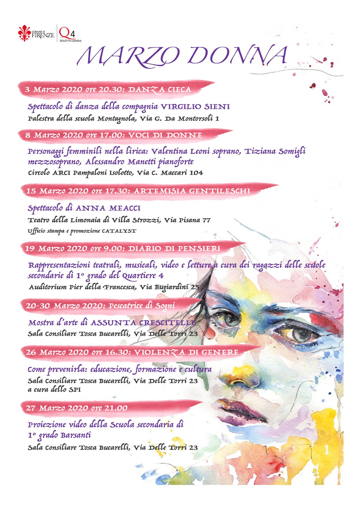 Anche quest’anno il Quartiere 4 dedica alle donne il mese di Marzo, proponendo riflessioni, convegni, spettacoli sulle tematiche di attualità che coinvolgono il mondo femminile. Il cartellone delle iniziative vedrà coinvolte scuole, associazioni e società del territorio, affinché la Giornata Internazionale della Donna non sia solo una ricorrenza ma diventi un rispettoso vivere quotidiano.