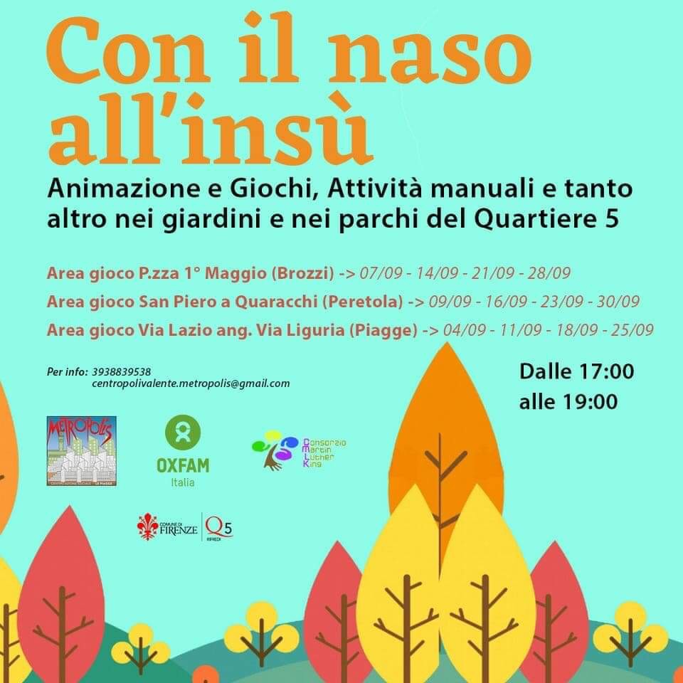 Nei giardini e nei parchi del Quartiere 5, in collaborazione con Metropolis, Oxfam Italia e Consorzio Martin Luther King, animazione, attività manuali gratuite e tanto altro dalle ore 17.00 alle ore 19.00.