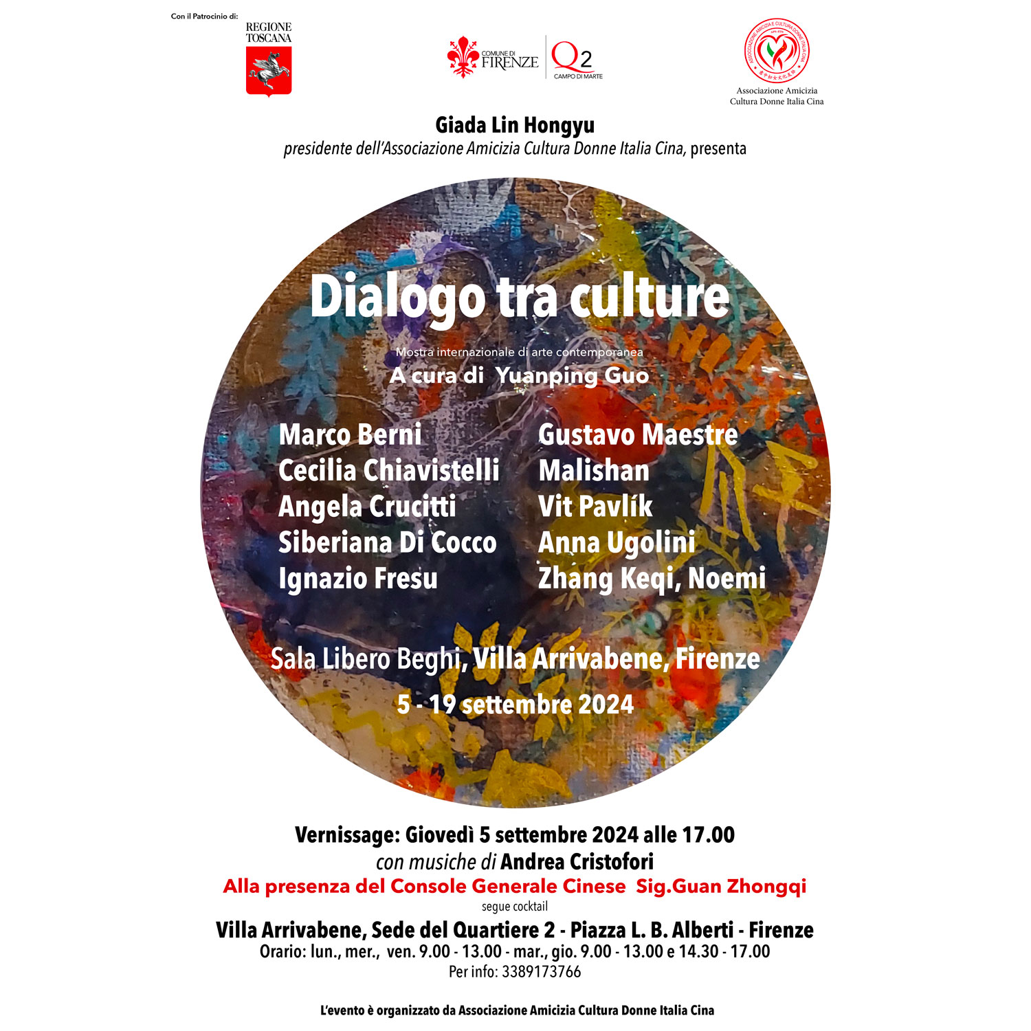 Giovedì 5 settembre, alle ore 17:00, presso Villa Arrivabene, avrà luogo l'inaugurazione della mostra "Dialogo tra culture", curata dall'Associazione "Amicizia Cultura Donne Italia Cina", con un accompagnamento musicale. La mostra sarà aperta al pubblico dal 5 al 19 settembre. In occasione dell'inaugurazione, sarà presente il Console Generale Cinese Sig. Guan Zhongqi.