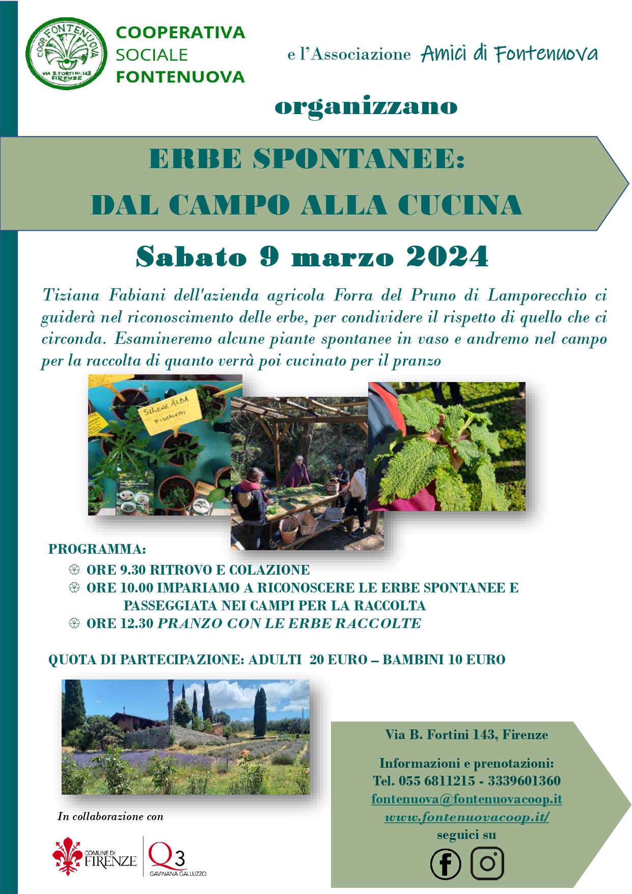 Informazioni e prenotazioni: tel. 055 6811215 - 3339601360, fontenuova@fontenuovacoop.it, www.fontenuovacoop.it