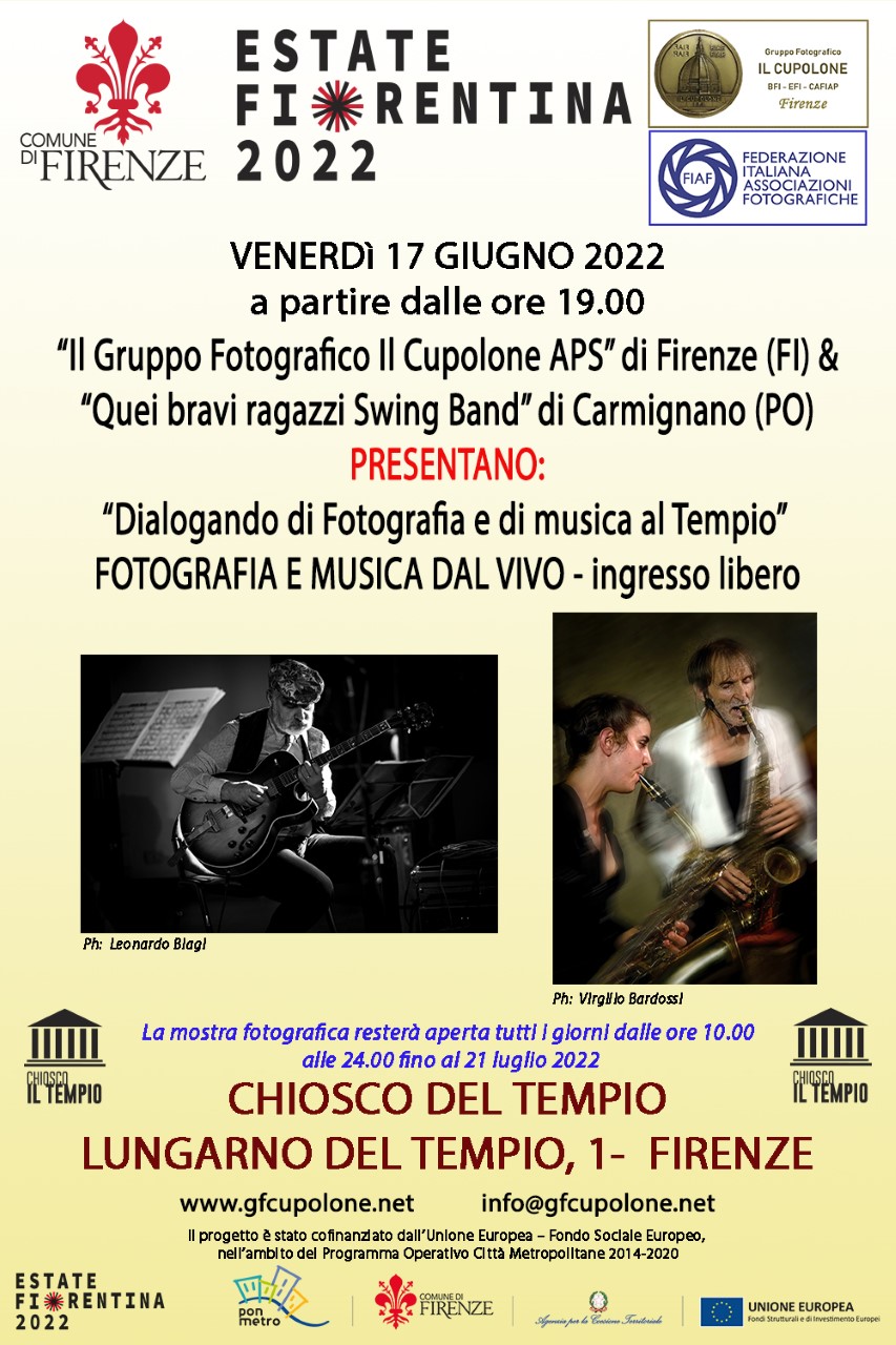L'Estate Fiorentina del Quartiere 2 si apre con la prima di una serie di mostre fotografiche permanenti in esposizione al Lungarno del Tempio, presso il Chiosco del Tempio e i Giardini Antonino Caponnetto, ad opera dell'A.P.S. Gruppo Fotografico "Il Cupolone". Il progetto prevede quattro mostre, una per ogni mese, aperte per tutto il periodo estivo e ciascuna introdotta da un'inaugurazione a ingresso libero con la presenza di musicisti dal vivo, in un evento che unisce musica e fotografia.
