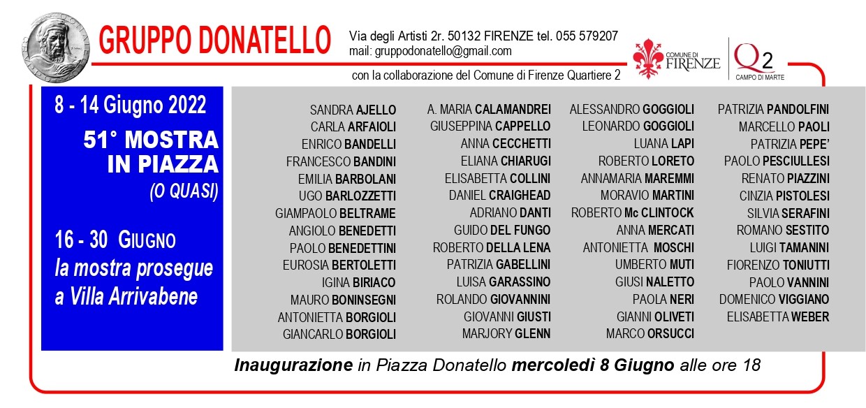 Dal 16 Giugno il Gruppo Donatello torna a esporre le opere dell'annuale Mostra in Piazza presso la sede del Quartiere 2