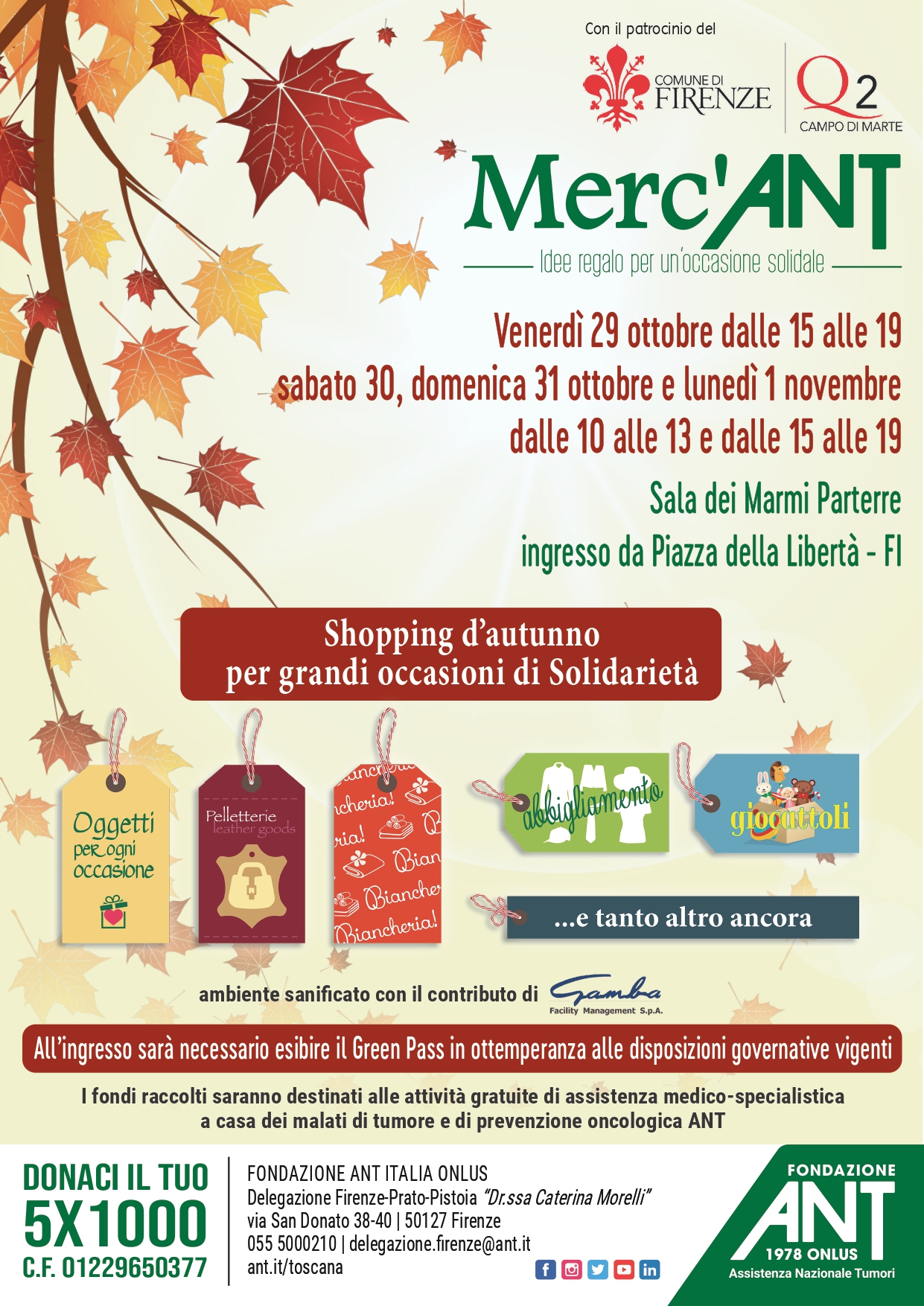 Ritorna il Merc’ANT d'Autunno nella Sala dei Marmi del Parterre in Piazza della Libertà a Firenze con inizio venerdì 29 ottobre dalle 15 e proseguirà anche sabato 30, domenica 31 ottobre e lunedì 1° novembre con orario 10-13 e 15-19.