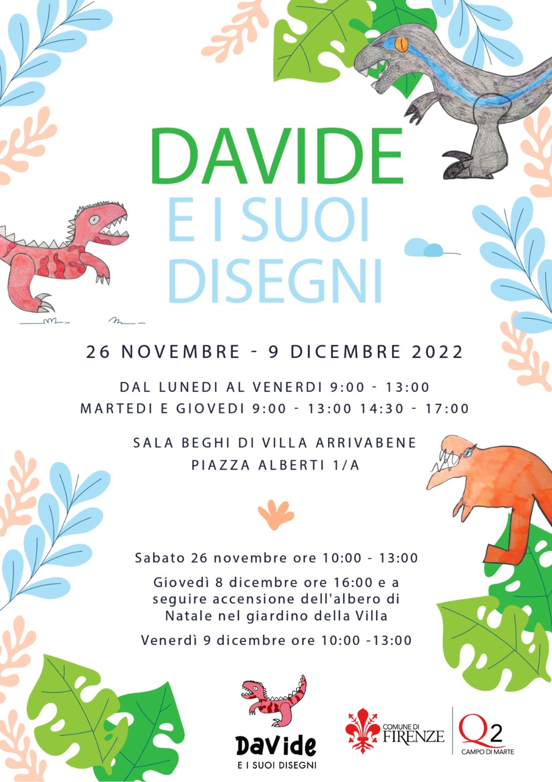 Dal 26 Novembre al 9 Dicembre, nella sala Libero Beghi di Villa Arrivabene, sarà in esposizione la mostra "Davide e i suoi disegni", curata da Rosanna Scaduto e Andrea Lorenzoni con la collaborazione del Quartiere 2, allestita in ricordo del piccolo Davide Lorenzoni e della sua passione per il disegno.