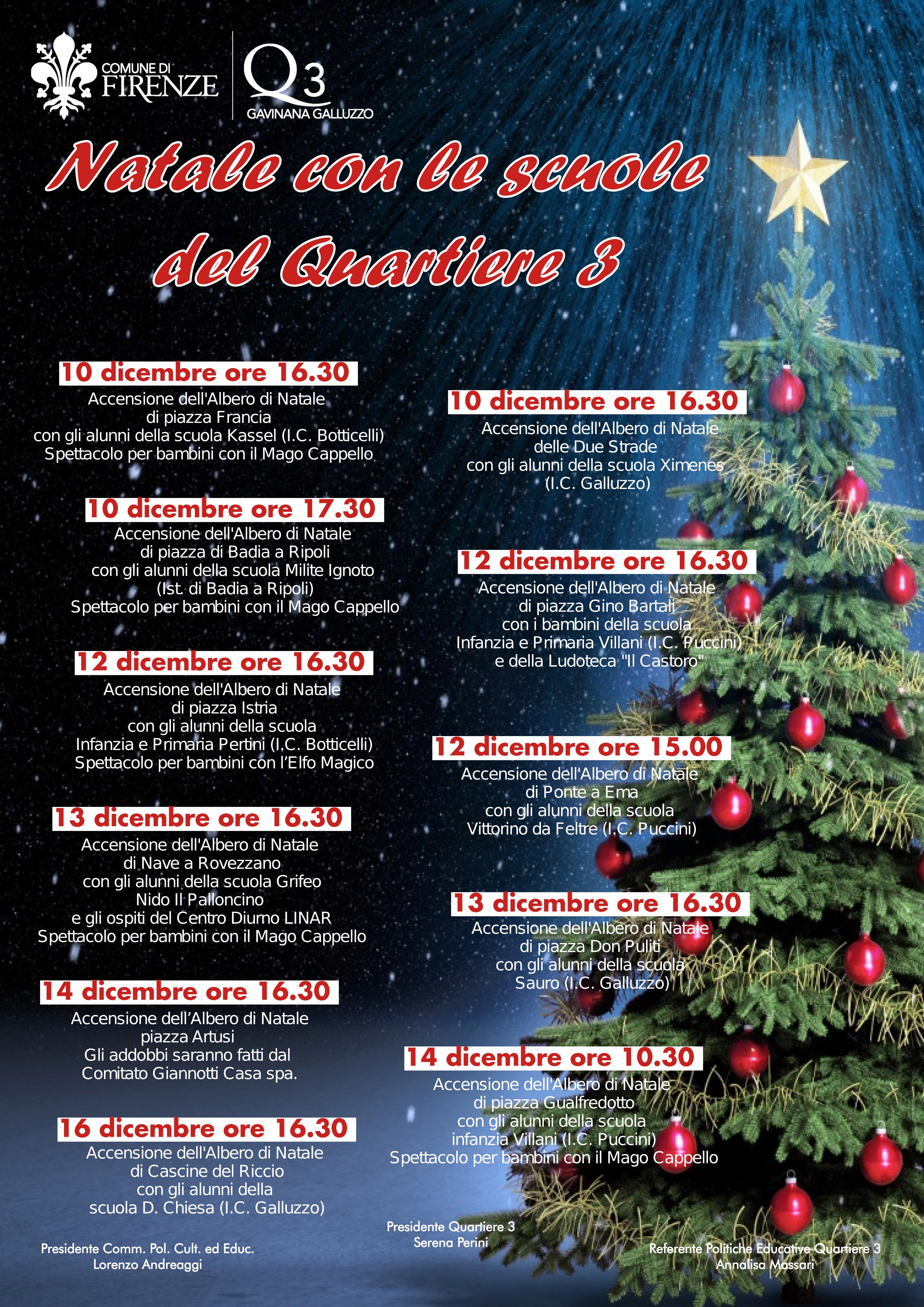 Di seguito il nuovo programma delle accensioni degli Alberi di Natale nel Quartiere 3.