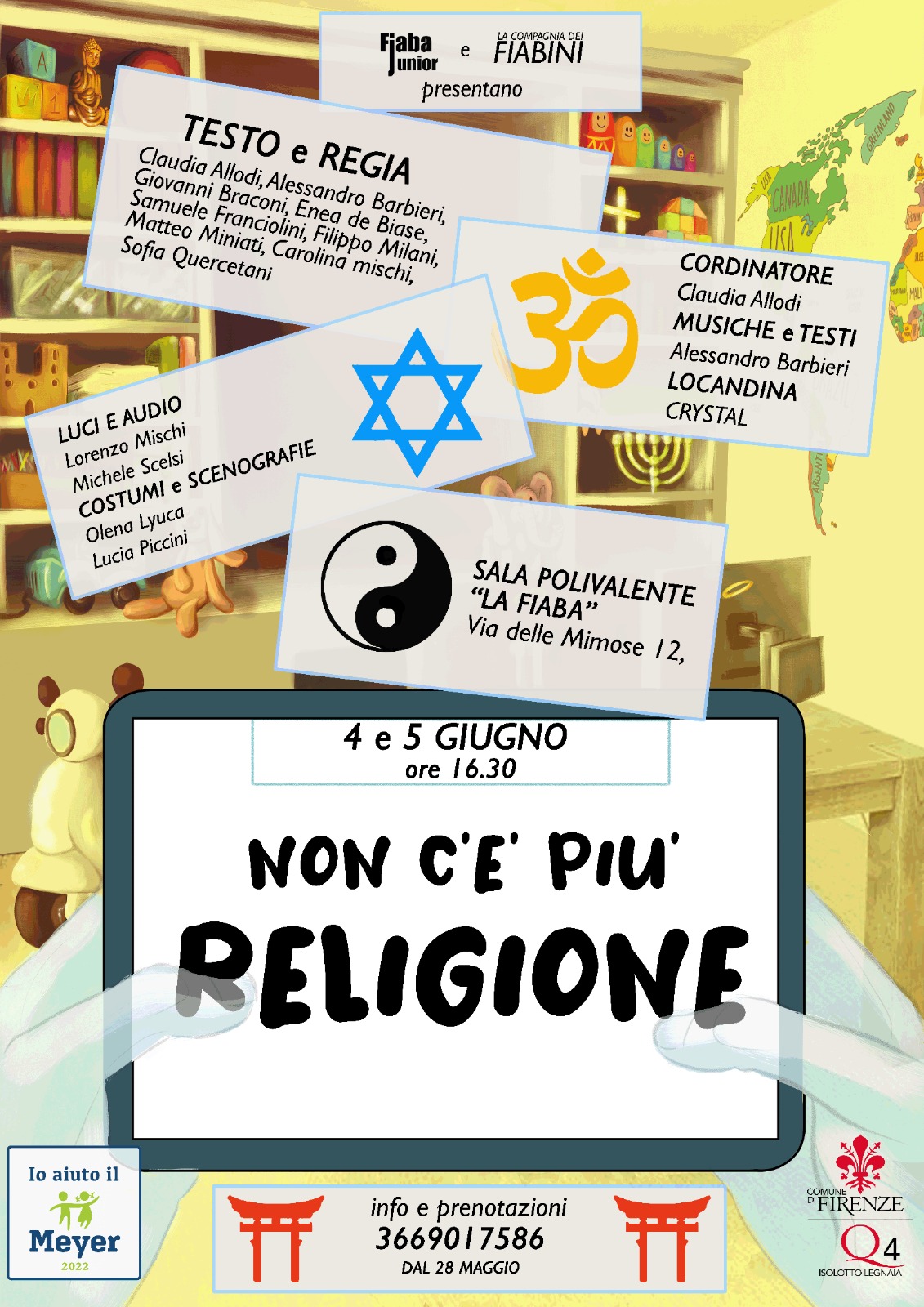 La Compagnia Teatrale Amatoriale Fiaba Junior, presenta uno spettacolo musicale realizzato da un gruppo di 40 bambini tra i 4 e i 12 anni facente parte delle realtà associative e culturali della Parrocchia Beata Vergine Maria Madre delle Grazie - Isolotto. Il gruppo è gestito in maniera amatoriale e completamente volontaria come servizio reso alla comunità del Q4.