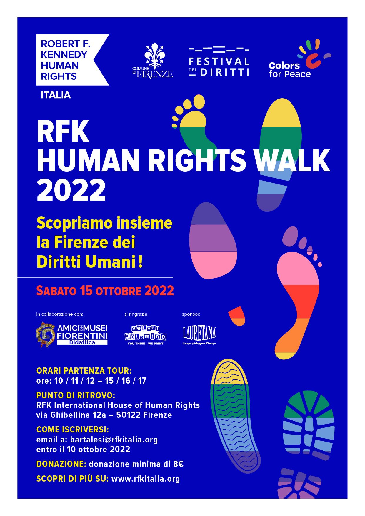 In copromozione con il Comune di Firenze, sabato 15 ottobre si terrà RFK Human Rights Walk, un tour guidato alla scoperta della relazione fra i luoghi più conosciuti di Firenze e la storia dei Diritti Umani. Sarà un’occasione per ragazzi e ragazze e le loro famiglie per conoscere meglio la città e scoprirne un lato poco conosciuto. Modalità di partecipazione nella locandina allegata.