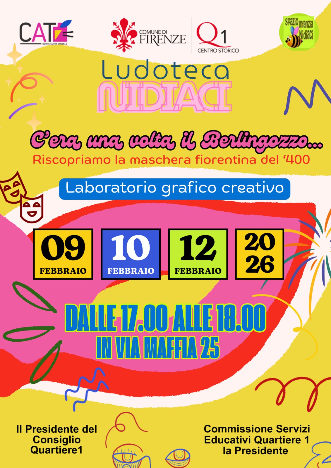 C'era una volta il Berlingozzo.  La riscoperta della maschera fiorentina è l'idea che ha mosso la ludoteca Nidiaci ad organizzare il laboratorio di carnevale aperto a tutti i bambini che vogliano riscoprire le tradizioni all'insegna del divertimento e del gioco.