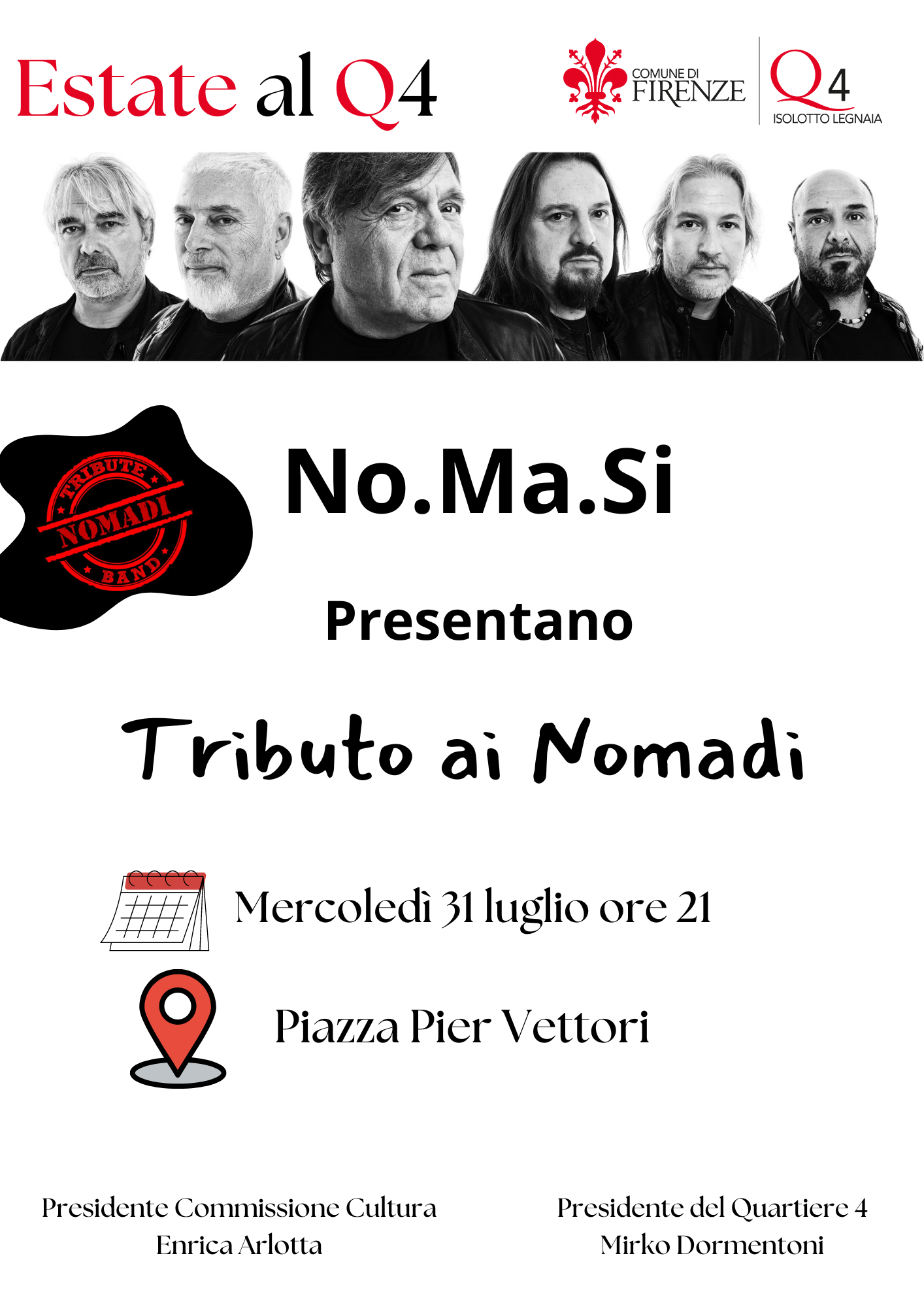 L'evento fa parte della rassegna "Estate al Q4", il tributo ai Nomadi si distingue come uno dei momenti più attesi, celebrando un gruppo che ha segnato la storia della musica italiana con testi profondi e melodie che ancora oggi risuonano nell'animo di tanti.