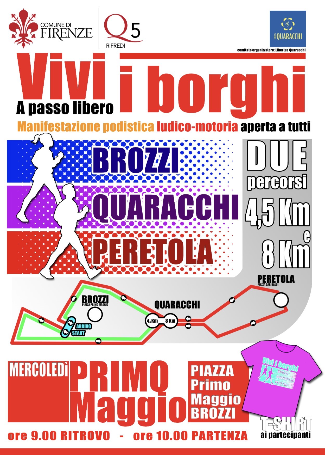 Ritrovo alle ore 9 in piazza I° Maggio, a Brozzi, con partenza alle ore 10.