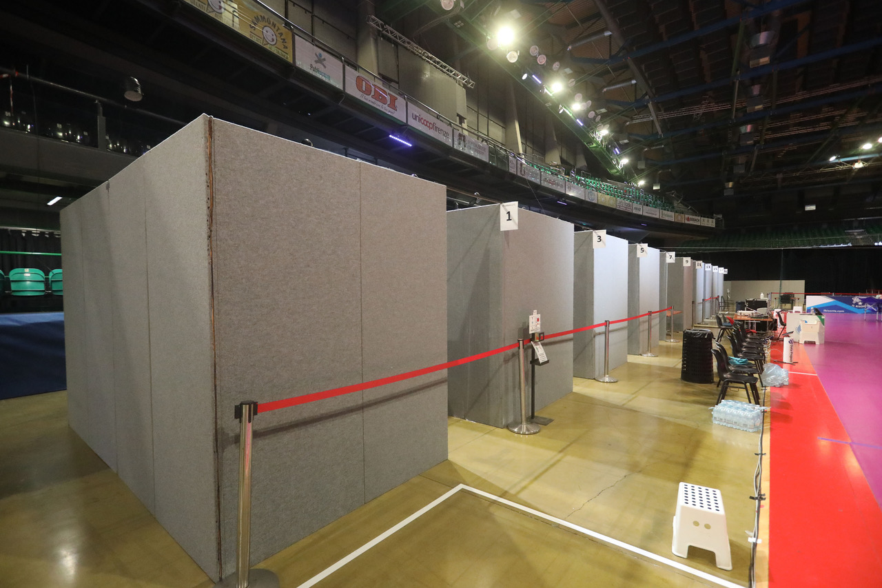 2500 metri quadrati con punti di accoglienza, box per i vaccini e zone stazionamento al piano terra del palazzetto dove sono stati predisposti 20 box di 3 metri per 2 in cui verranno effettuate le vaccinazioni, una zona accoglienza e informazioni con 6 postazioni, una zona stazionamento post vaccino (con 6 postazioni) che servirà anche a prenotare l’appuntamento per il richiamo.