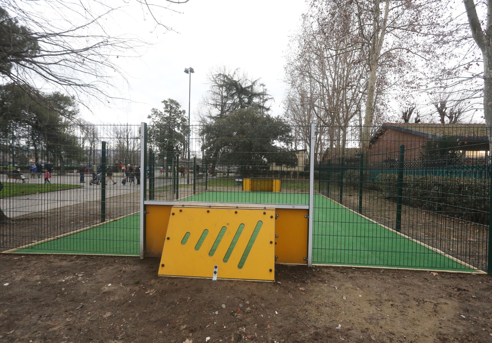 La recinzione ha caratteristiche dimensionali e costruttive tali da evitare al massimo la pericolosa fuoriuscita del pallone dall’area di gioco, considerato il frequente utilizzo del giardino da parte di bambini molto piccoli. Il nuovo impianto sportivo è infatti adatto a bambini di età fino agli otto anni circa e sarà fruibile negli stessi orari di apertura del giardino di Bellariva.