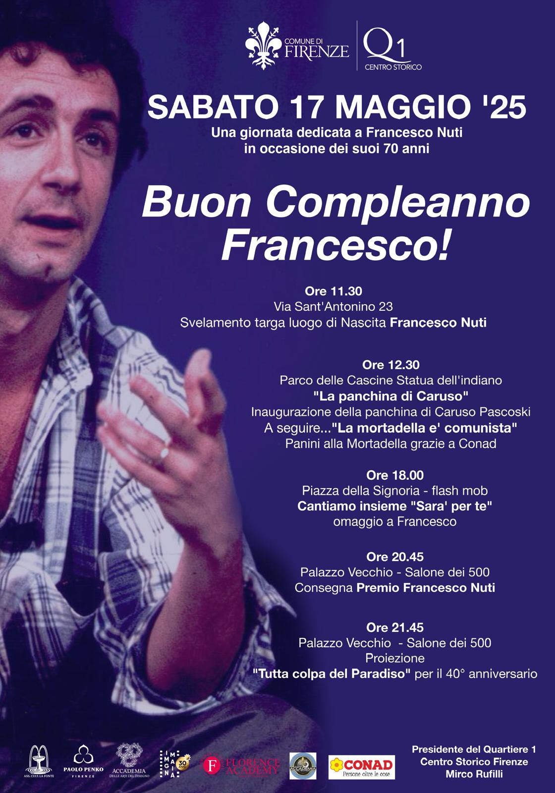 Sabato 17 maggio: una serie di imperdibili appuntamenti nella giornata dedicata a Francesco Nuti in occasione dei suoi 70 anni