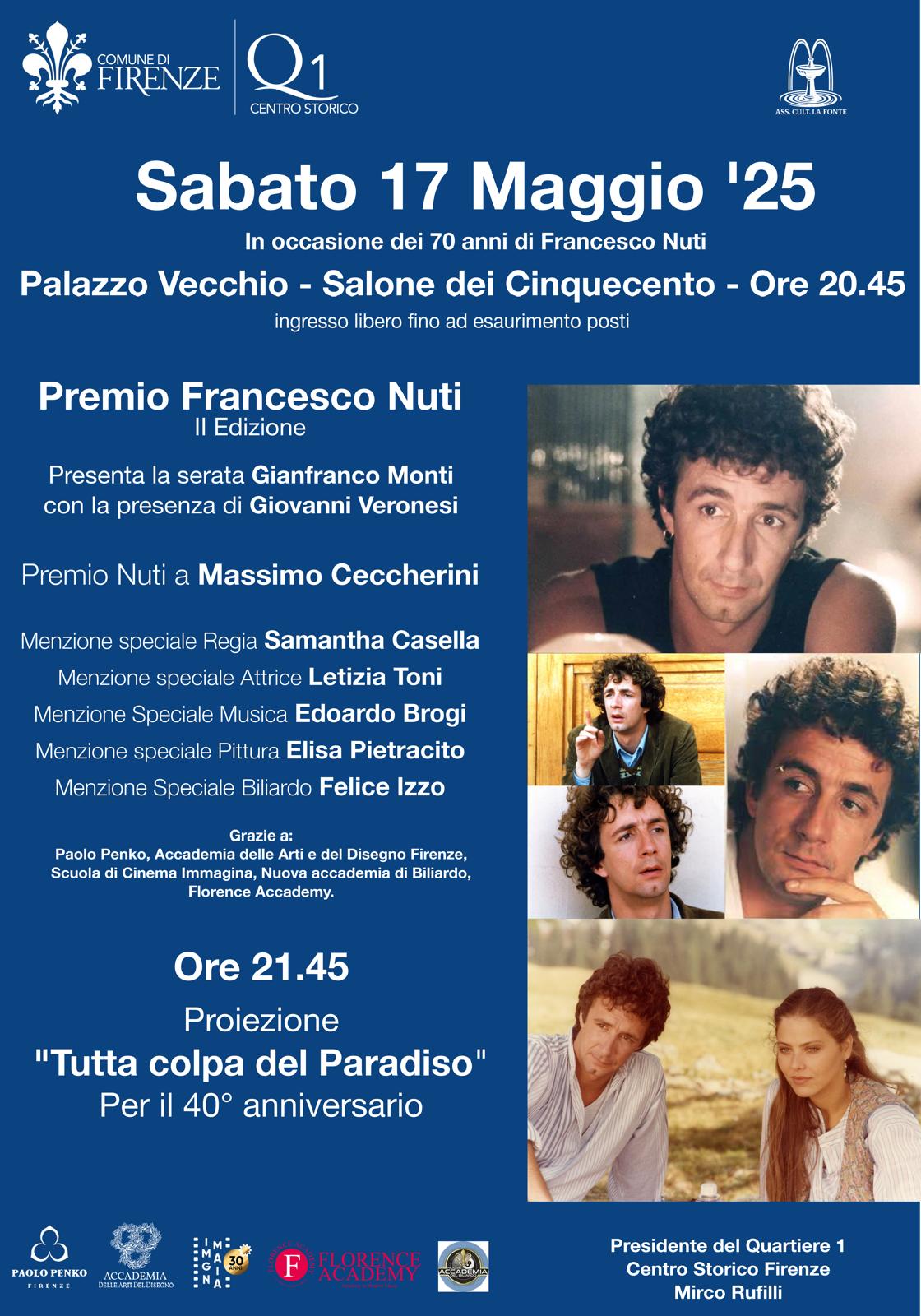 ore 20:45 Palazzo Vecchio - Salone dei Cinquecento, consegna premio "Francesco Nuti"