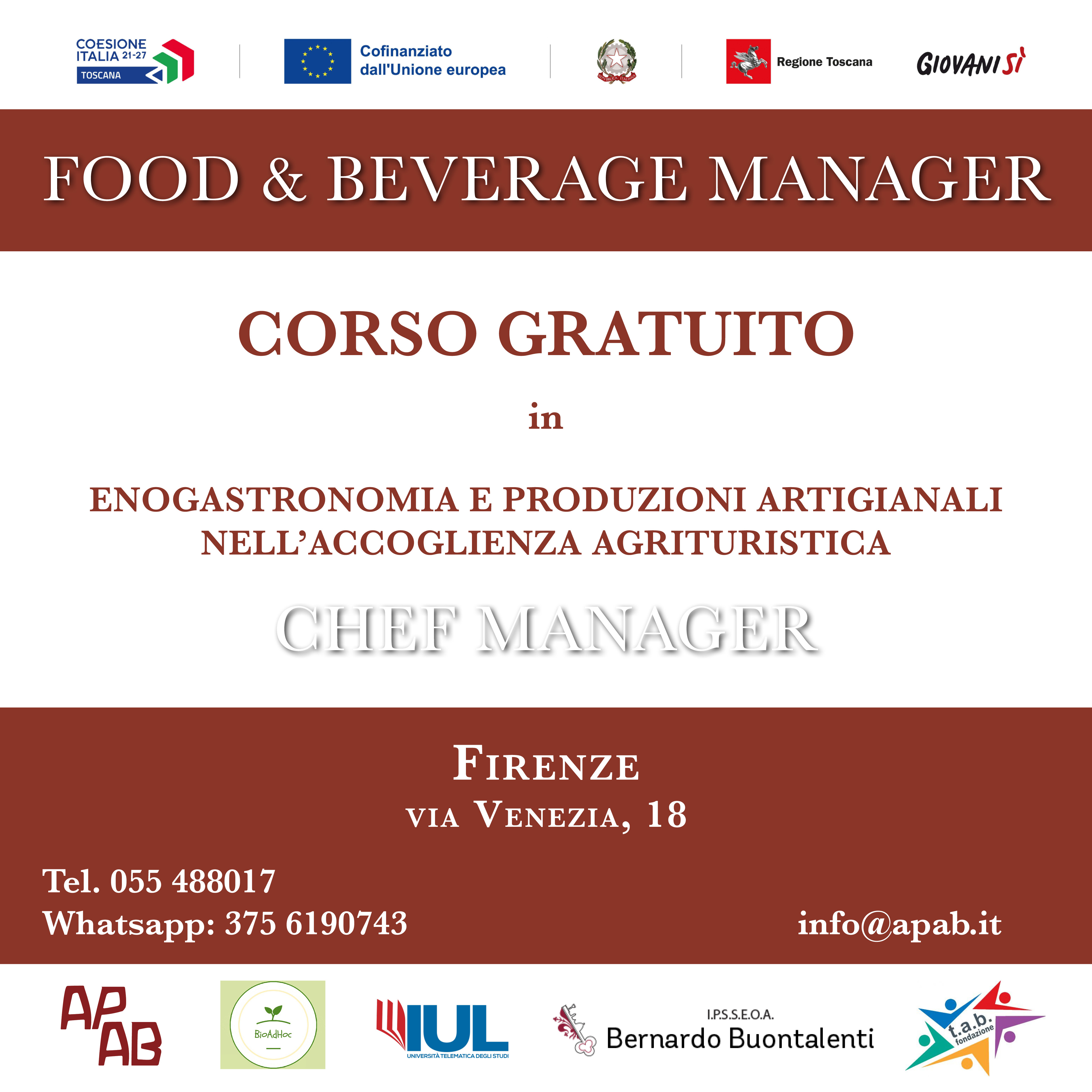 Il Quartiere 4 segnala un'importante opportunità formativa per chi desidera specializzarsi nel settore enogastronomico: il Corso CHEF MANAGER (Codice Progetto 315155), completamente gratuito e finanziato dal POR FSE 2021/2027 nell'ambito del progetto Giovanisì della Regione Toscana.