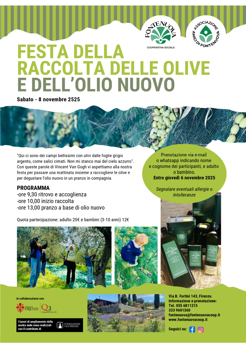 Sabato 8 novembre presso la Cooperativa Fontenuova si svolgerà la festa della raccolta delle olive e dell'olio nuovo.