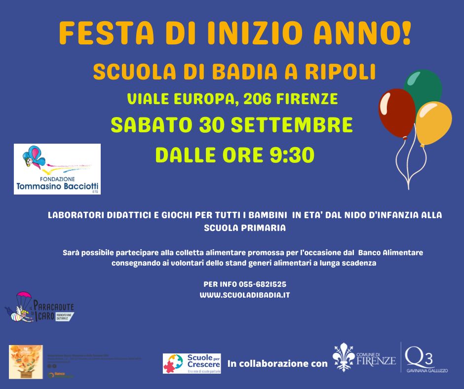 Sabato 30 settembre presso la scuola di Badia a Ripoli in viale Europa, 206 dalle ore 9:30 si terranno dei laboratori didattici e dei giochi per tutti i bambini in età dal nido d'infanzia alla scuola primaria.